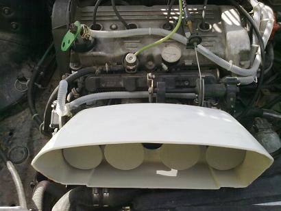 Като е готов,махам късите тромпети,слагам дългите и изработвам мрежа с филтър на нея,захващаща се със щипки за еърбокса.