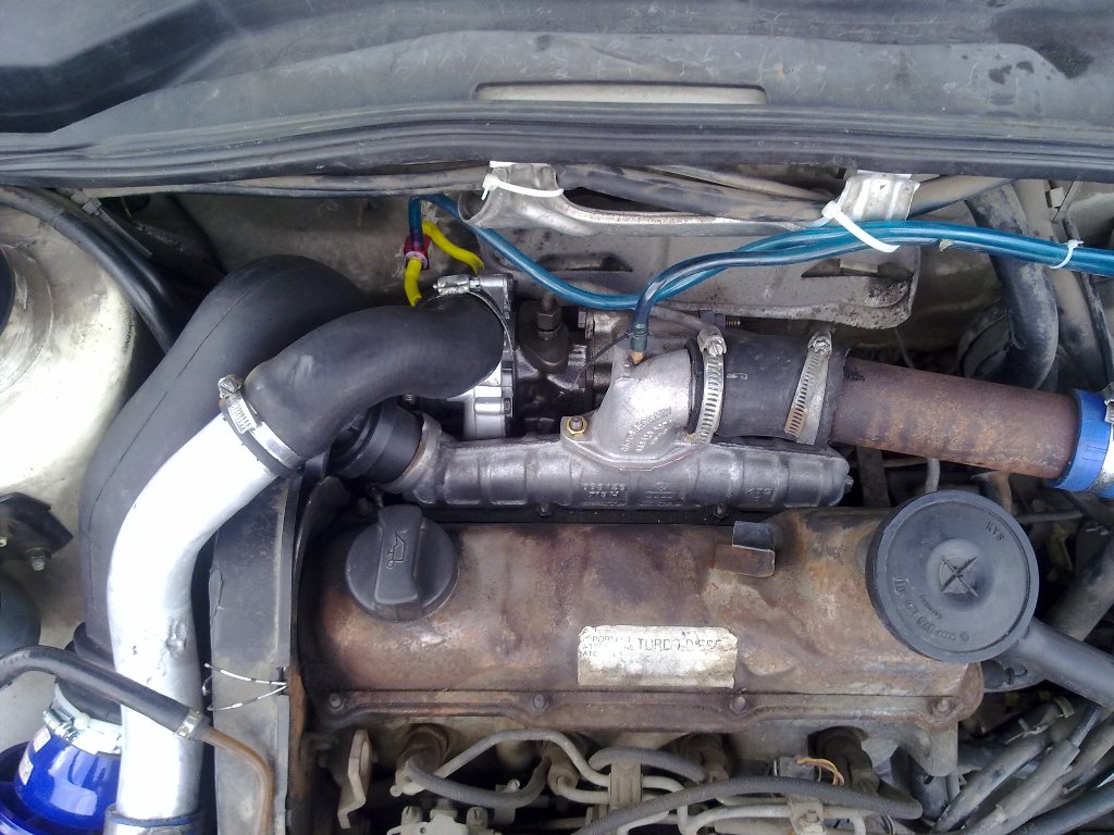Днеска се заиграх и понаместих контролера-беше на обратно свързан.сега работи на положение минимум = 1.0 бар,на макс на 1.3. Без контролер си работи на 0.6-върнах шпилката на турбото.Горивото ,което пуснах от помпата не е много-оборотите са 1000-1050.Като пусна гориво отиват до 1300 .Това,което усетих като я карам на минимум бууст и малко гориво е много приятно.Много динамична е,а има още мегдан.Предстои да я пробвам на повече гориво и турбо.В момента обаче върви малко по-малко от ККК14,а нея я карах на 1.4.Другото нещо е ,че сега силата ми е нагоре и турбината държи налягането.ККК14ката вдигаше 1.4 ,но не ги поддържаше.Тази като беше на 1.3 си ги държи и колата си ускорява по-продължително.Проблема е,че след като предишното масло ми изгоря,заради счупеното турбо още много пуша.Явно тръбите са задръстени с масло.Иначе тръбите и маркучите към кулера и от него са измити.