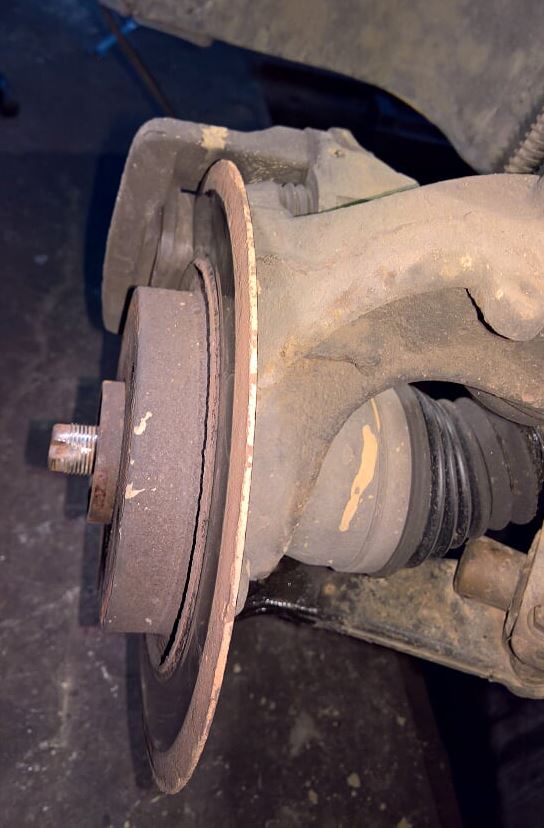 Малко офф-топик, но да се посмеете. Останах потресен, като видях дебелината на спирачния диск, а клиента даже попита майстора: "Не може ли още да изкара". Не знам дали личи на снимката но дебелината на диска е максимум 2мм.