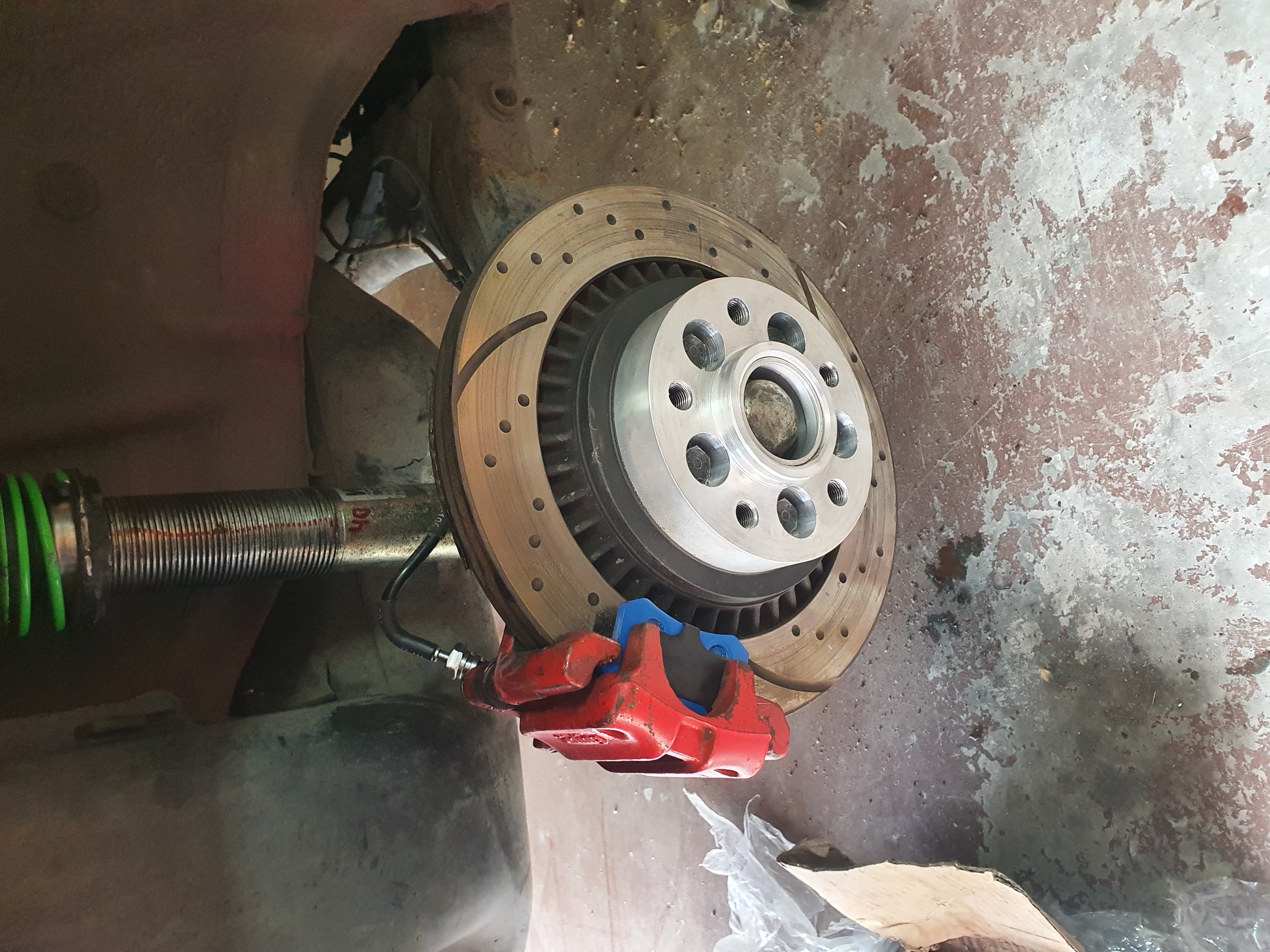 334мм диск със шест бутално Брембо 18z от Кайен/Кю7 също се събира в повечето 17-ки , това за голф 4 , при Пасат 5 /5.5 с 345мм диск и същото Брембо също може да се събере в 17-ка. Джантите естествено не трябва да са с голямо ЕТ или борд , а адапторните планки трябва да са много прецизно изработени , защото работата е за милиметри .