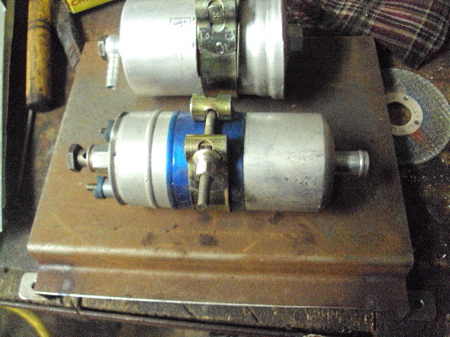 Днес си направих стойка за помпата(външна) и филтър и утре продължавам с направата на резервоара който заедно с помпата и филтъра ще бъдат монтирани на мястото на резервната гума, остава ми така прословутия изпускател но заварчика ми си има много работа тези дни и няма време да се занимава с моите глупости и във вторник ще го карам на бояджия пък след това продължавам да се занимавам с колектора.