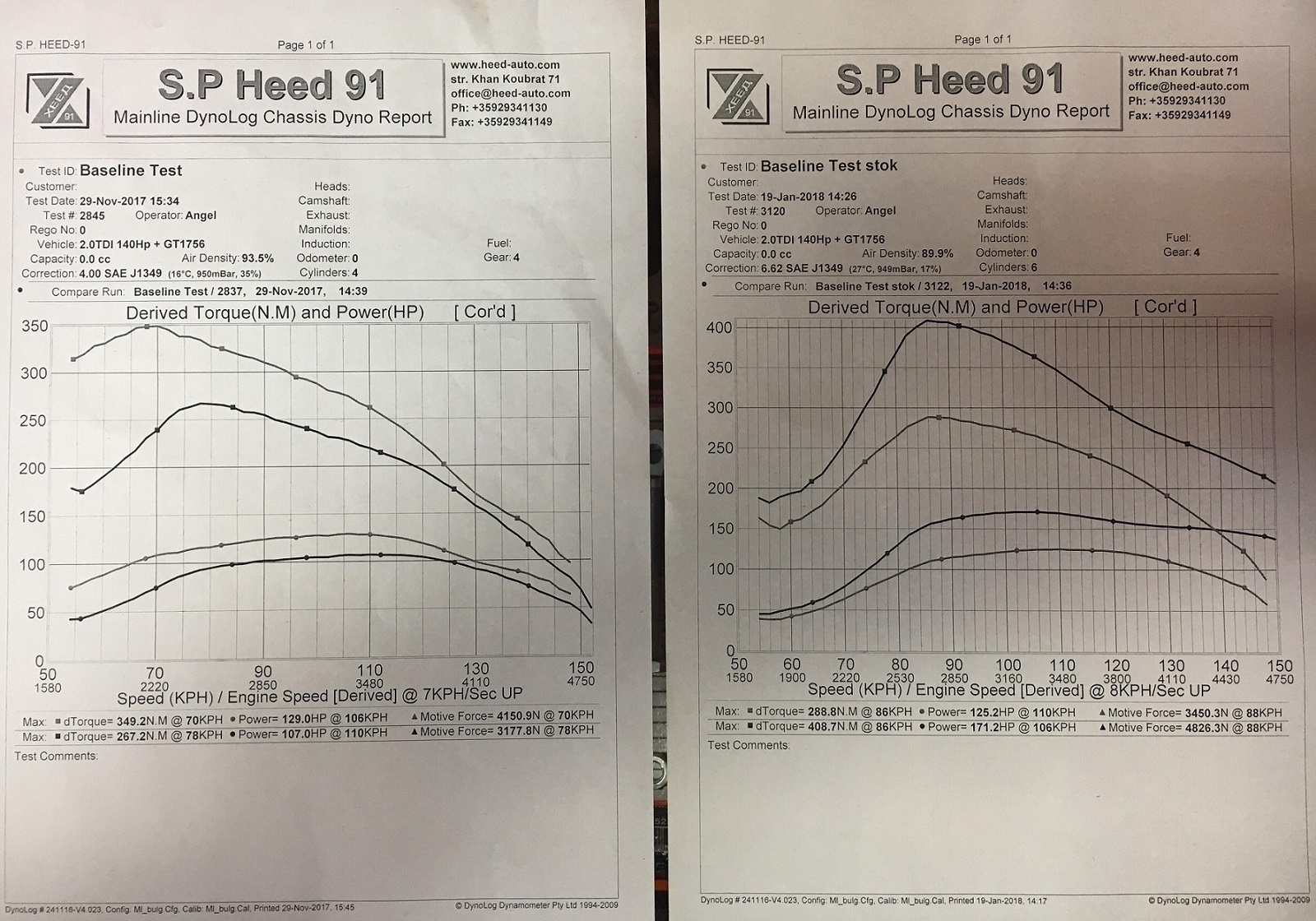 Ако ви прави впечатление на първото дино колата стокова изкарва 107кс. на гуми а на второто дино 125кс. на гуми.
