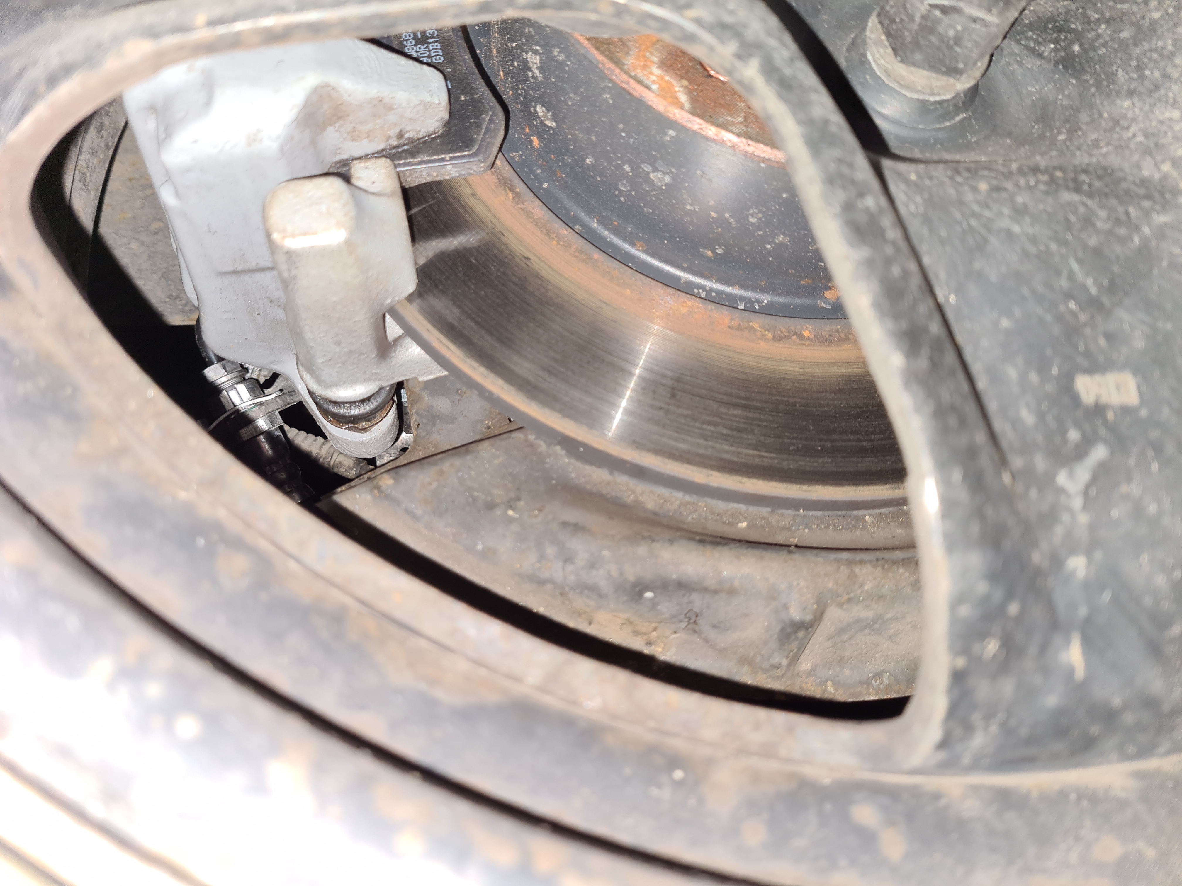 Задният десен диск има ръжда като вътрешен кръг 2см - тоест там накладката някак си не лови. Останалите дискове са излъскани и вече изглежда накладките са се напаснали.