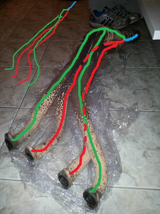 P.S. При така издяланата самоделка и свързването на 1-2 и 4-3 на куп,ще дефазираш мотора и ще работи във пъти по-лошо от стоковият ти колектор.Ако поне бяха със еднакви дължини,можеше да ги събереш във една(4-1)и да имаш някакъв резултат във високите...