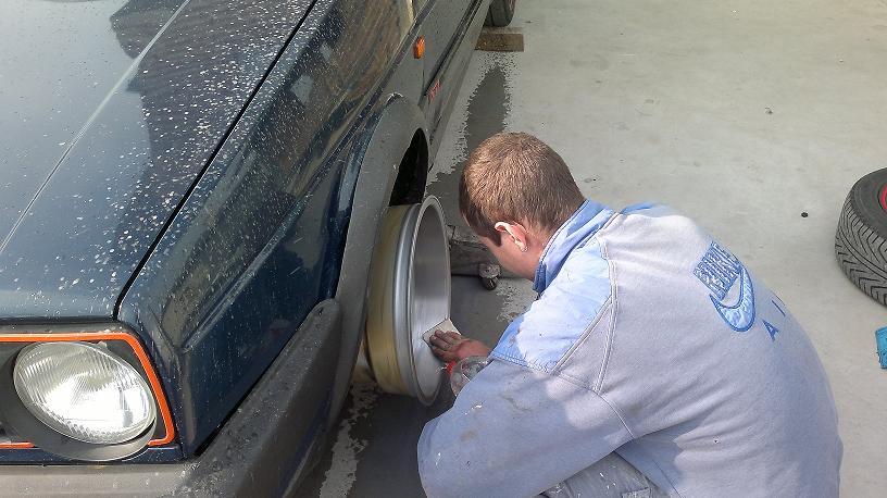 и от днес малко....само с 2 джанти сум поради причината че предните ги пратих и тях даги испраят на валове и даим опраят ръбовете зада могат дасе пулират и боядисат...фаровете бяха направени с жълто фолио...гледах една 2-ка във вортекса и много ми хареса така...но неговите бяха оригинални а моито с фолио