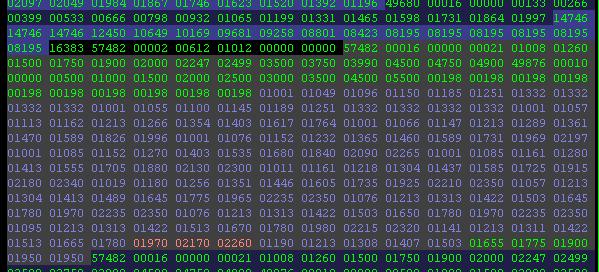 Виждаме първите битове където пише 165. Това е информацията че от там започват оборотите. След това идва обяснението аджеба колко е голяма тая карта демек 16 (16 реда или 16 колони). Следващия маркер е 169, което е load-а и е по 16 и той.