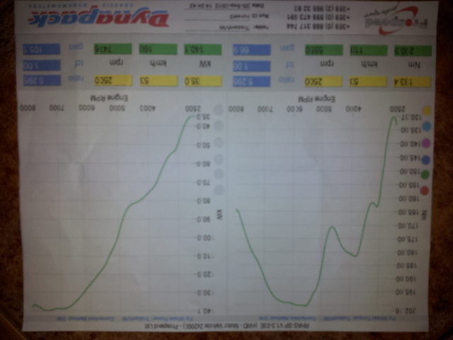 Това 190 коня на главините ли са? Че Боби даде май над 170 коня на колелата на хеед-ското дино, а разликата между двете дина е от небето до земята. За мене това не са 200 коня, а са си 190 на двигател. Толкова, колкото на Боби без кованяци (до колкото помня) и с 42мм дросели, а ти май беше с 50+.