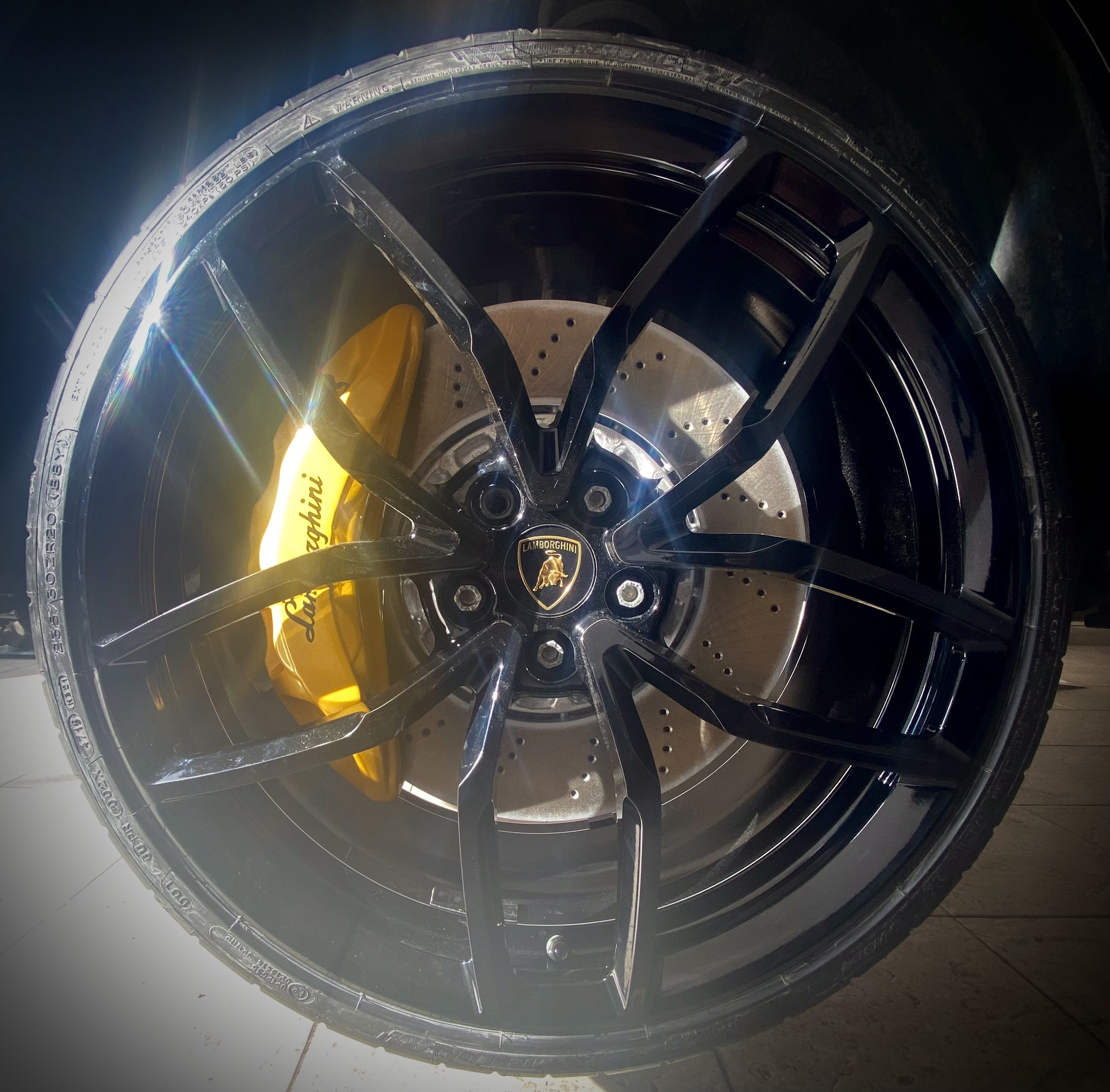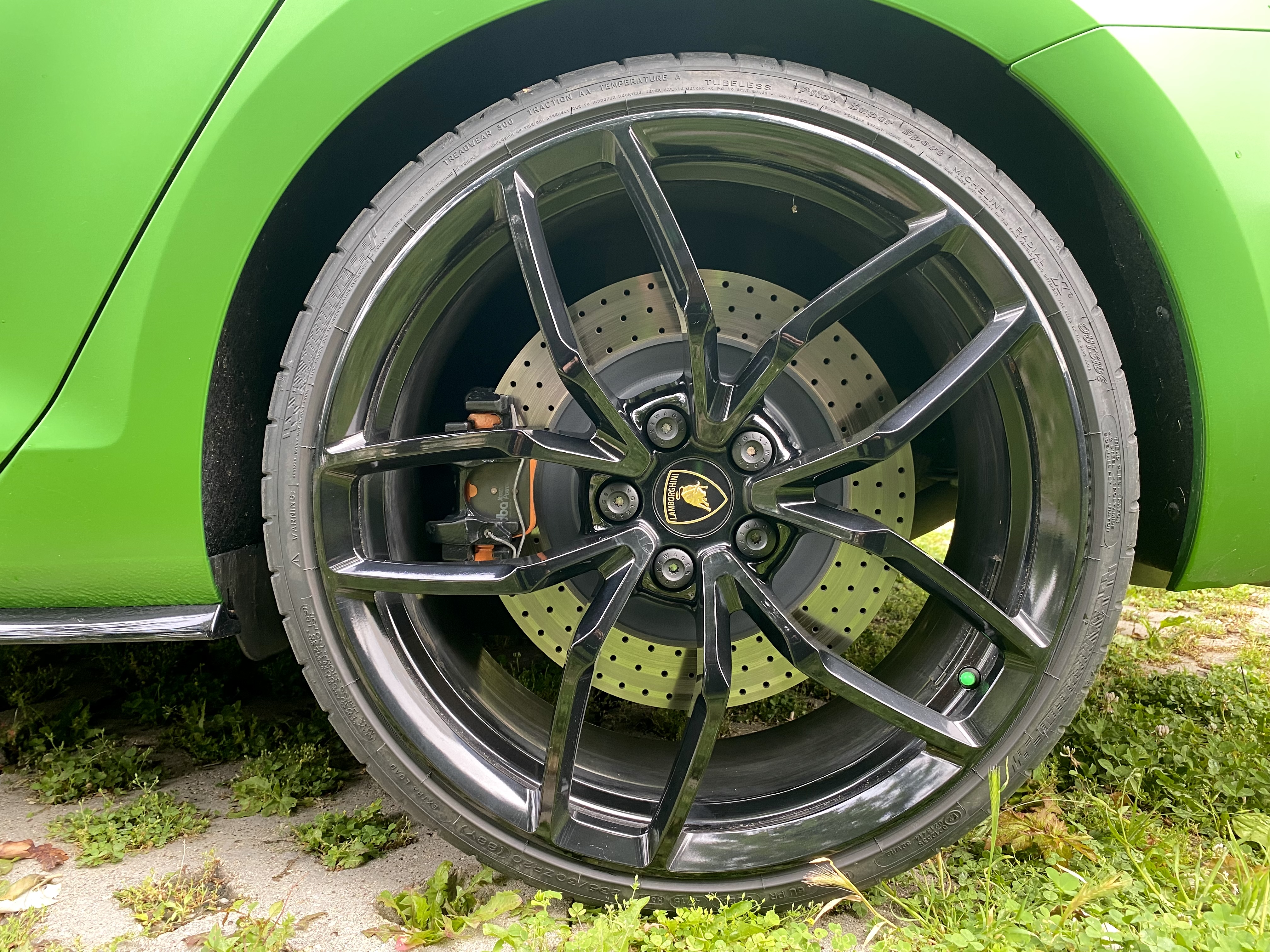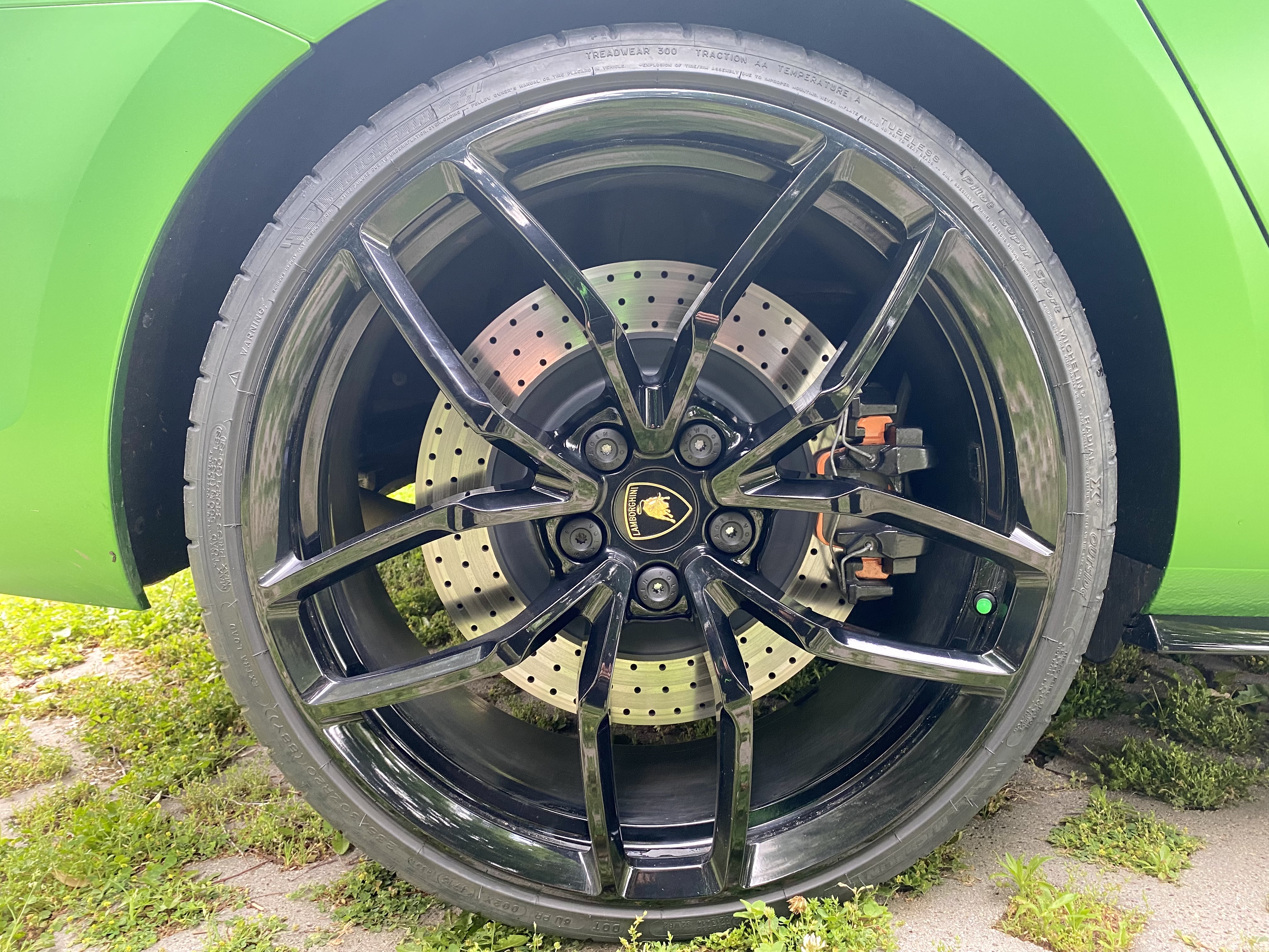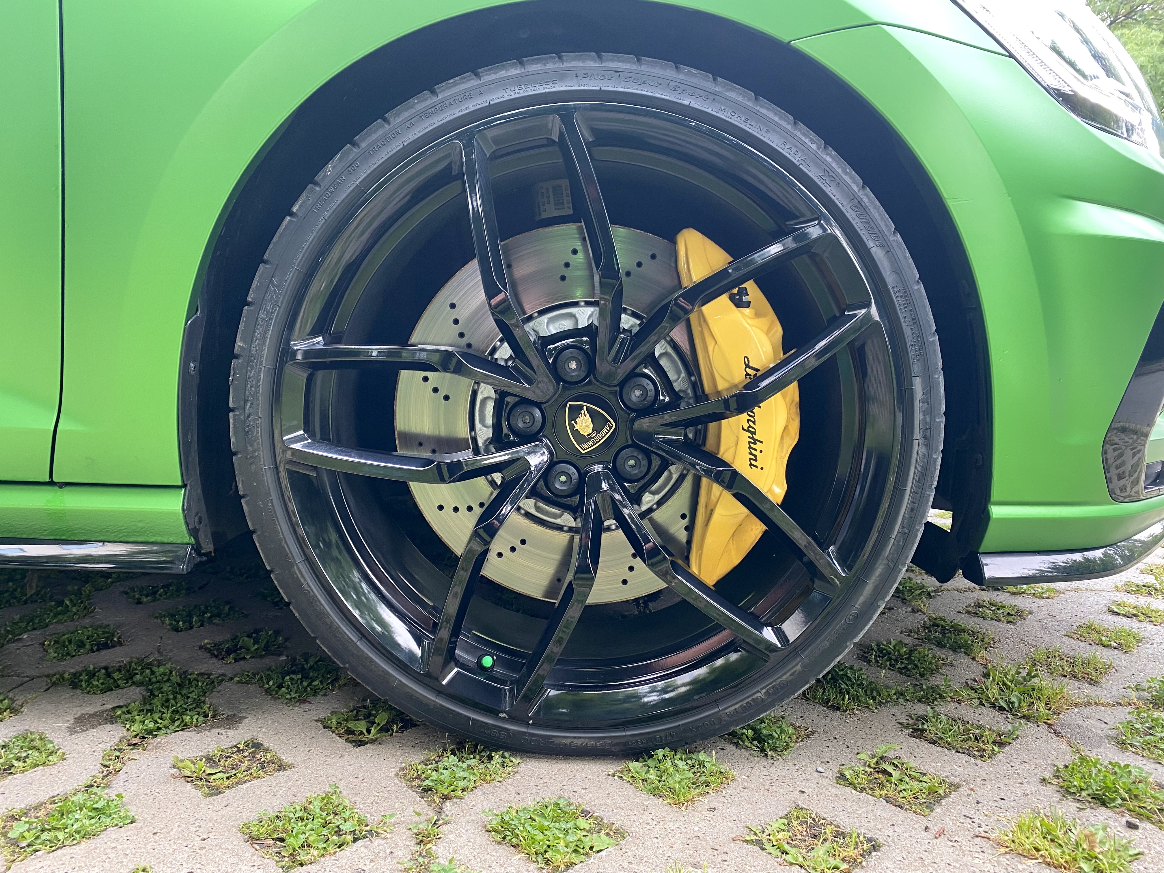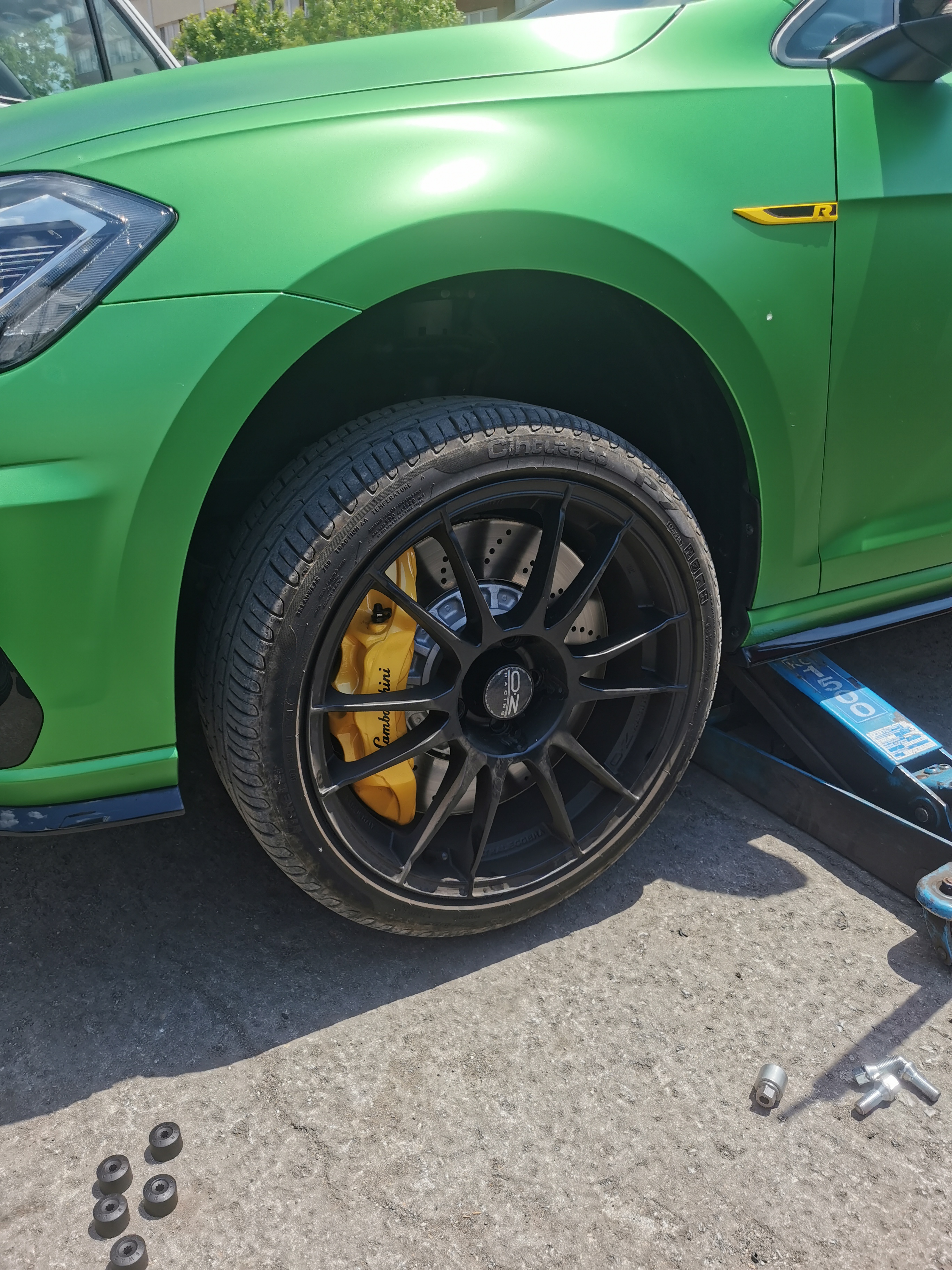 За да ги събера избрах джанти 20х8,5J ET42 - предни от Lamborghini Huracan, които пасват идеално без фланци. Избрах тези джанти, защото тежат само 9,6 кг. Сега отпред джантата е на едно ниво с калника, за сега не съм установил да опира при завой. Избрал съм гума (235/30 20), която запазва обиколката и диаметъра спрямо оригиналните гуми (235/35 19). Апаратите могат да се съберат и в 19, а дори може би и в 18 джанта (за последното не е сигурно, ако намеря подходяща, ще пробвам), но трябва да има правилната широчина и ЕТ. Фланците също са опция, но например опитах оригиналната джанта Pretoria, която е 19х8J ET 50 с 15 мм фланец и не е достатъчно, трябват още един-два мм. Само че в този вариант излиза повече от това, което на мен ми харесва от калника, а и не знам колко ще е сигурно.