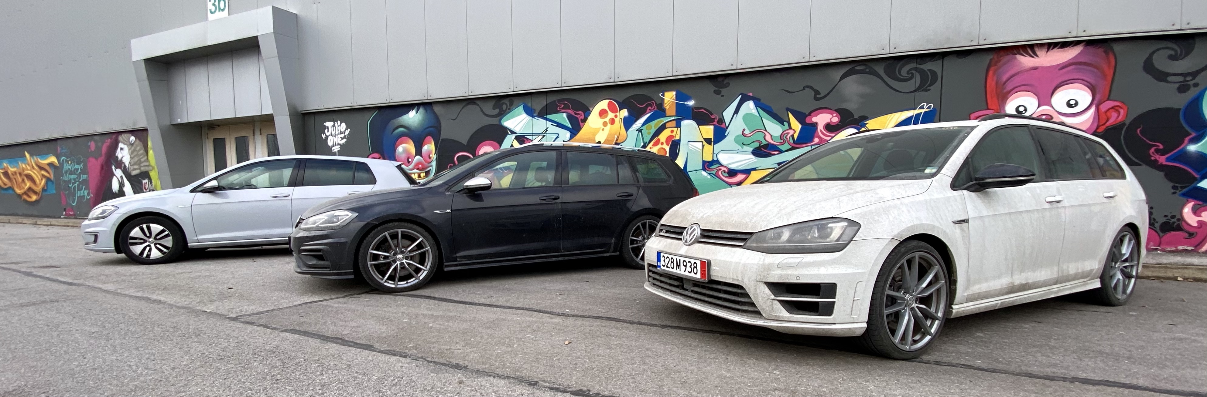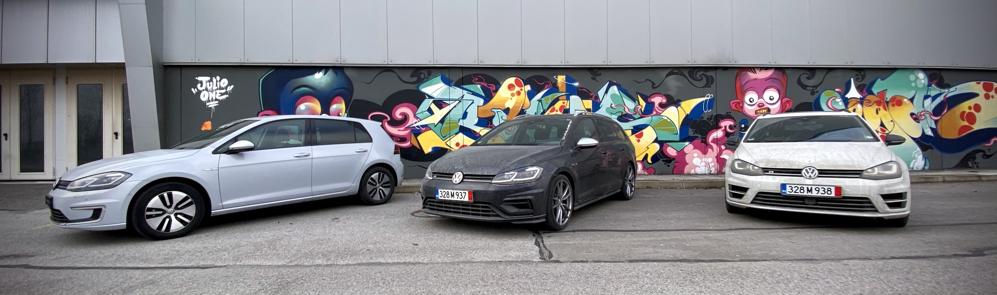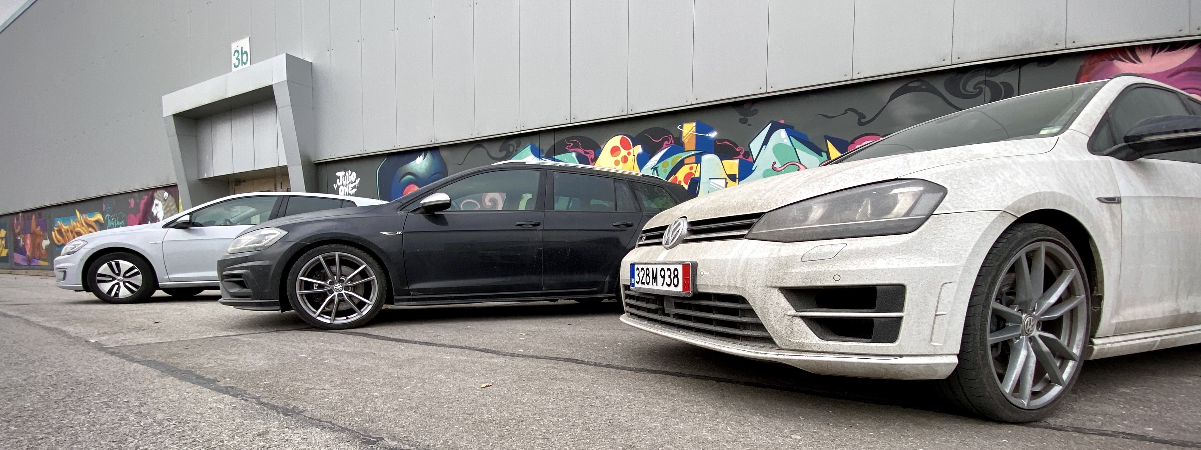 Може би тази гледка ме провокира, не знам, може би и самият факт, че едва ли има истински фен на Volkswagen, който да няма желание за Golf R, започнах да поглеждам от време на време такива автомобили. Не само че намерих, ами харесах цели два (единият по поръчка на приятел). Ето ги мръсни, точно свалени от автовоза (заедно с един електрически за цвят):