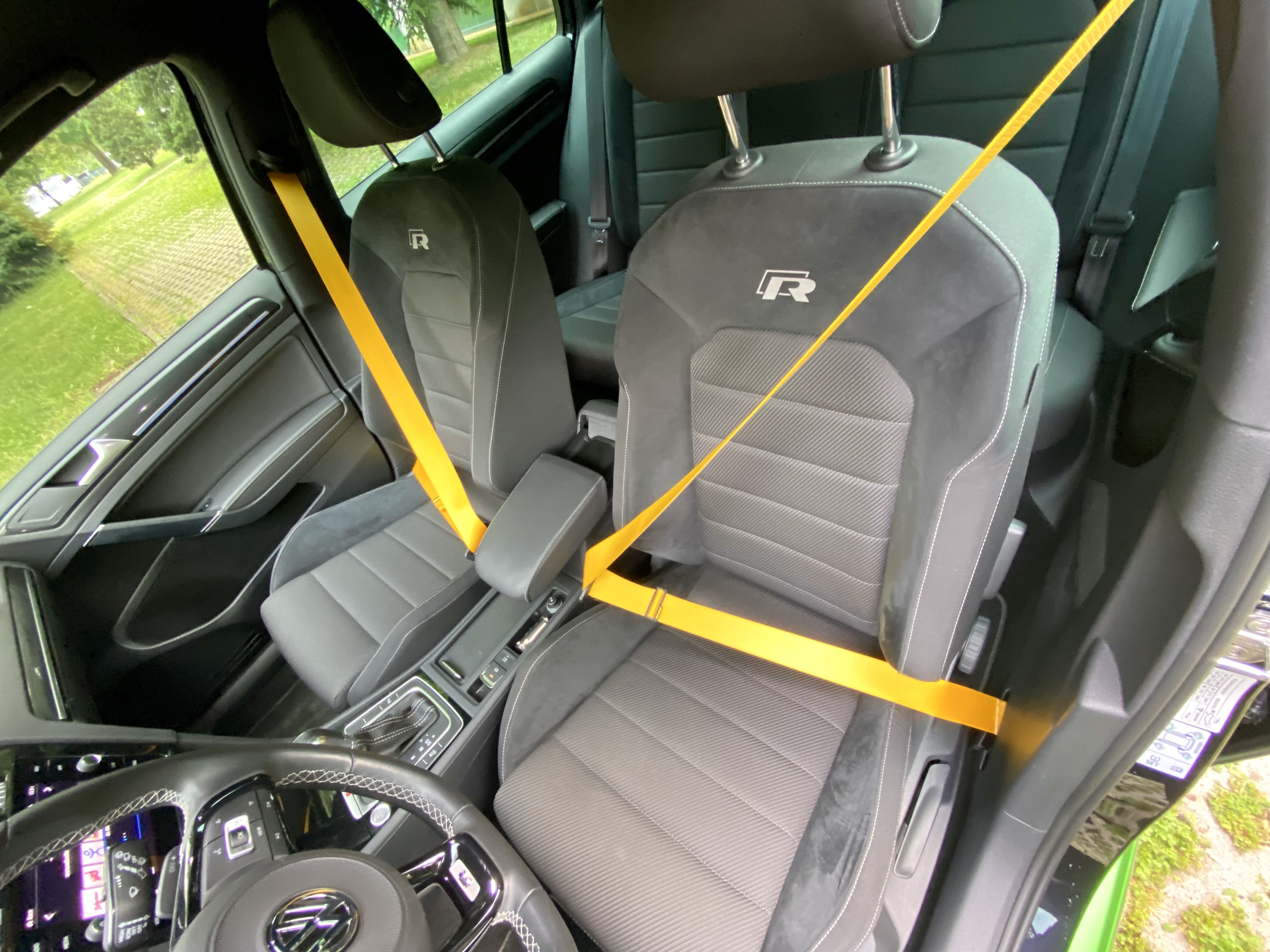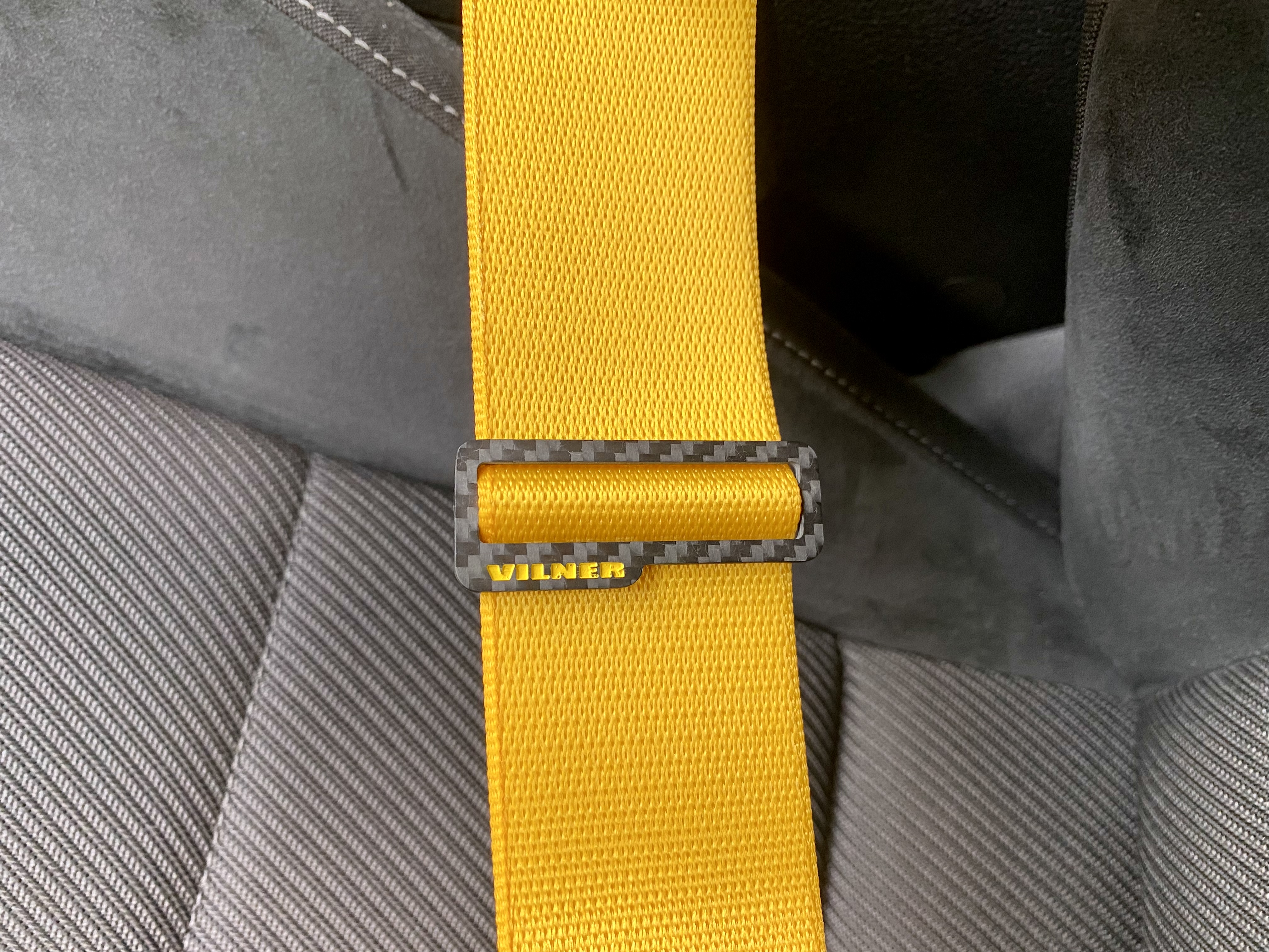 За да допълня жълтите елементи, реших да сложа и жълти предни колани във Вилнер: