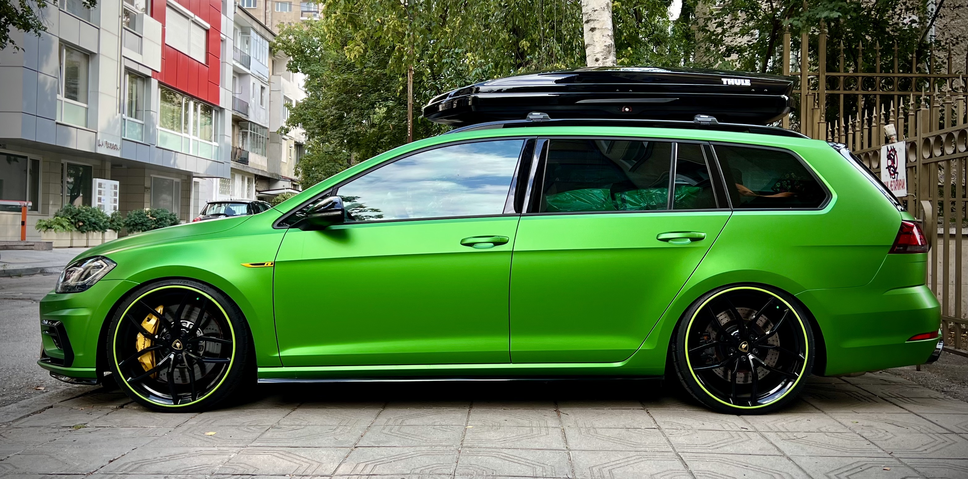Работата, която свършиха включва: Цялостно външно облепяне в цвят Matt Krypton Green от PWF – Platinum Wrapping Film от Bulfolio. Релсите на тавана, страничните огледала, хромираната лайсна в предната решетка и задната емблема облепени в черен гланц. Хромираната част на „R“ емблемите е в жълт гланц. Джантите и спирачните апарати са с керамично покритие XPEL Fusion Plus Wheel & Caliper. Предните стъкла (врати и челното стъкло) са с поставено слънцезащитно фолио Bruxsafol Ultra Nero IR75. Бялата част на стоповете са със защитно фолио XPEL Slate Smoke 50, а дистроника с XPEL Slate Smoke 35. Защита на фаровете със Solar Gard Clearshield Pro Hydro.