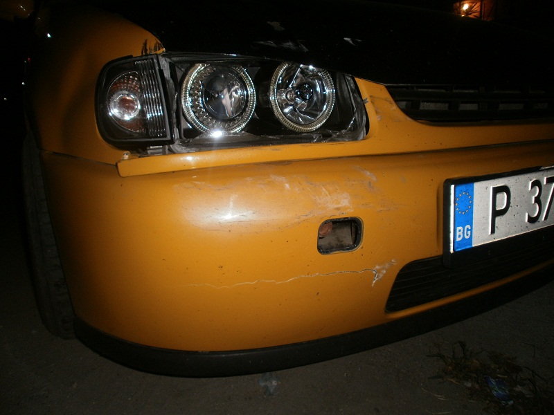 Та какво стана.. ами карам си аз по пътя с 50 км/ч и отзад ме застига една Хонда Сивик с около 100-120 км/ч и имаше коли в насрещното и не можа да ме изпревари и по едно време ме изпревари и от там почна да ме засича и да намаля така, че да спра. Изпреварих го аз по едно време и тоя си кара яко зад мен на 10-20 см от задната ми броня и стигам едно училище там има легнал полицай и пешеходна пътека, аз намалих почти спрях ( на тротоара имаше 100-150 деца!) и тоя ме изпревари и спря рязко пред мен. И слизат 3-ма младежи му 20-25 години и почват да ритат по колата, отвориха ми 2-те врати и ме ритаха от ляво и от дясно и с юмруци ме налагаха. Биха ме там каквото ме биха, потрошиха колата колкото можаха и се качиха в тяхната кола и заминаха. Аз тръгнах да звъня на 112 и в това време дойдоха 2-ма полицаи на мотори и така.. Понеже имаше много свидетели и казаха номера на полицията и още снощи ги намериха и си признаха всичко. Аз си извадих медицинско и сега ще ги съдя до дупка.