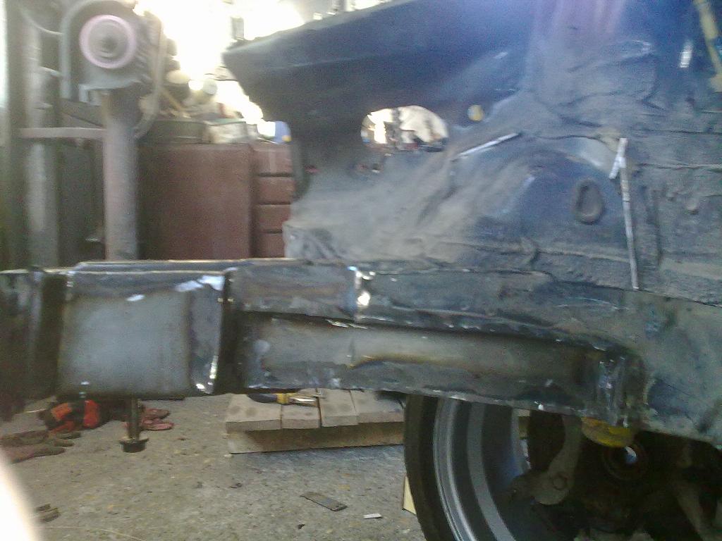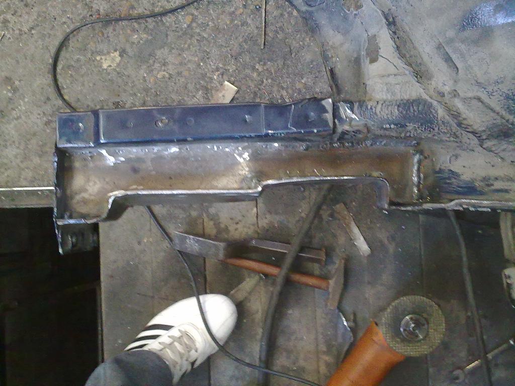 Заваряване на задния тампон и подсилване дясната греда