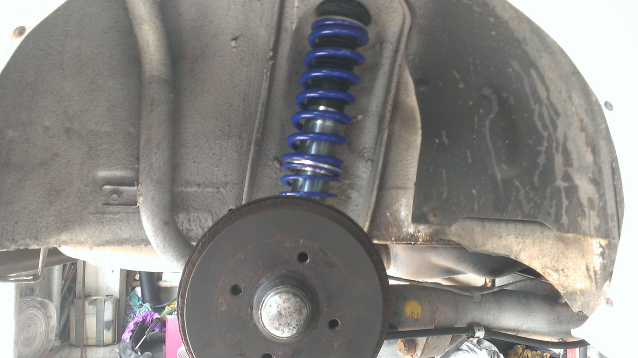 Сменя се г'де що не е сменено до сега, като обслужване по колата. (съединител, жила, лагери, карета, тампони, окачване, термостат и още много др.) все още неподменяни. Ето малко снимки от монтирането на задните койловете. Утре и предните, че чакам по хубави тампони за отпред. Гледам частите да са от по доказани марки или "оригинални".