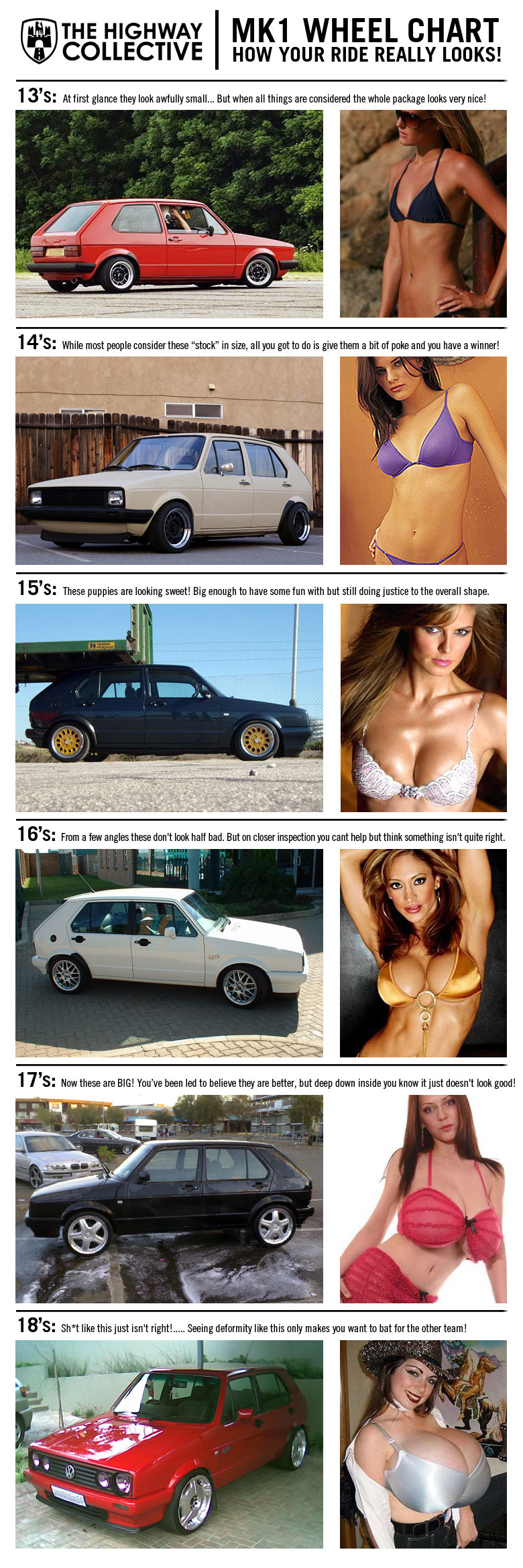 Малко по-големи става, но много големите определено изглеждат много зле. Някои си мислят, че щом по-големи е по-добре значи дай да сложим максимално големите, които изобщо може да се съберат и да съществуват гуми за тях.