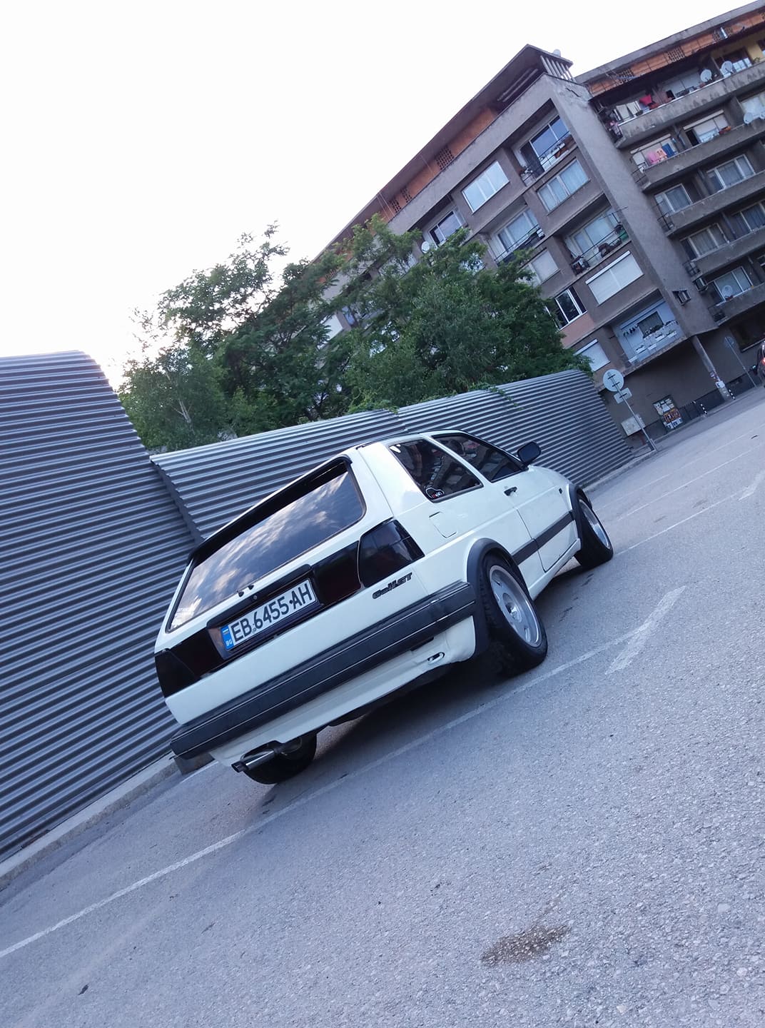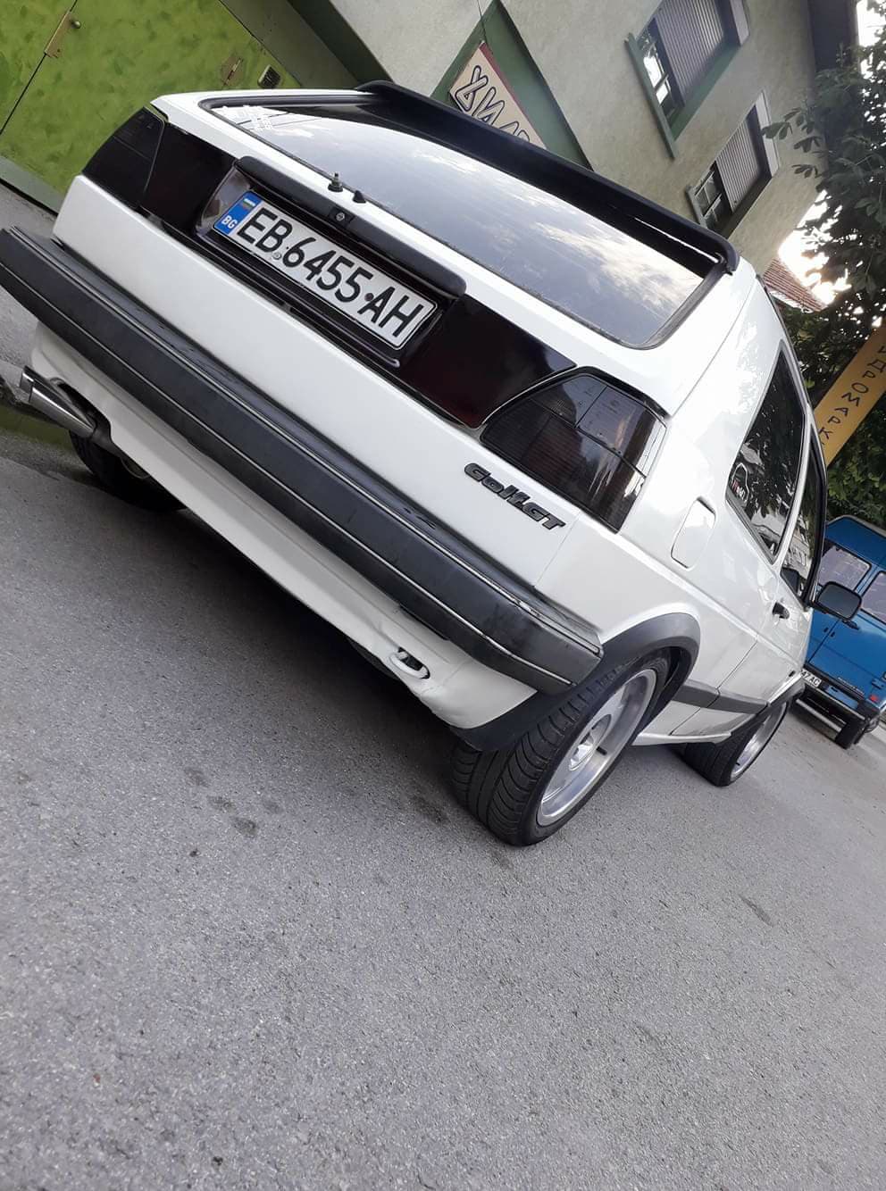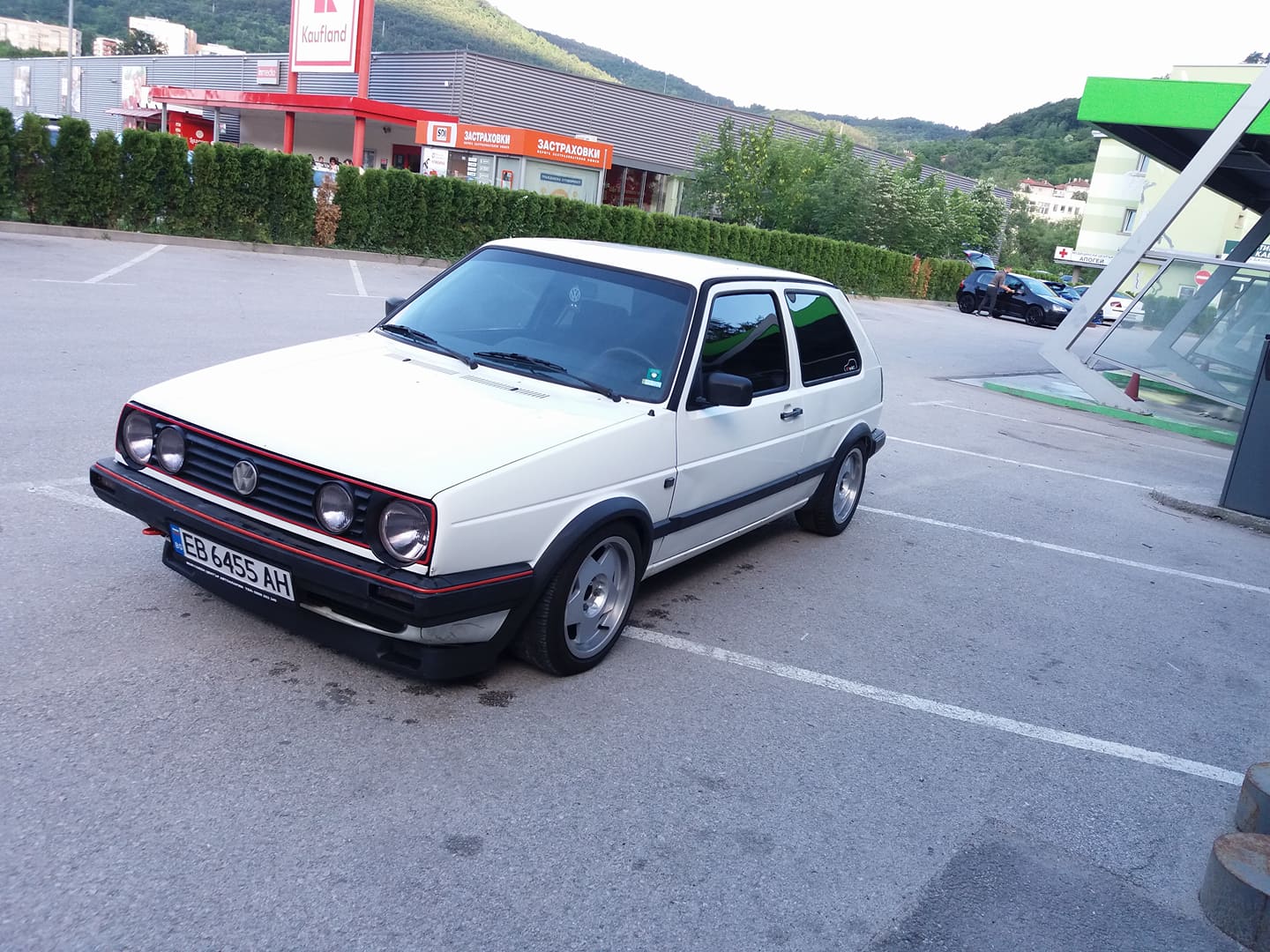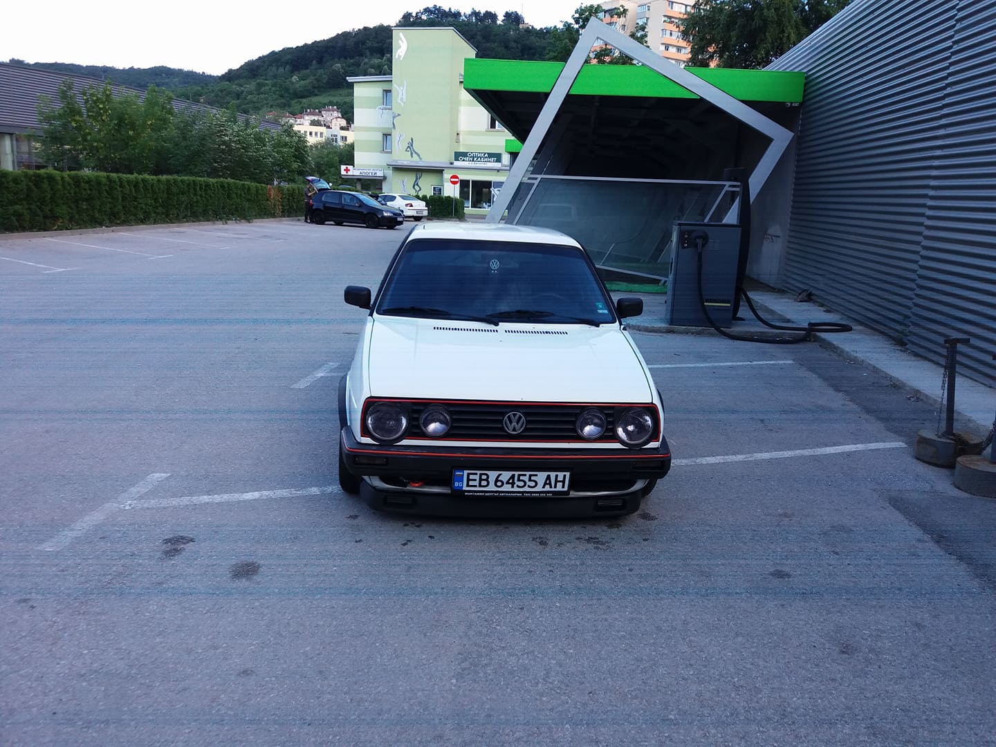 Понеже голфа седеше под терасата,а тя почна да тече и капеше по капак и бронята,всичко стана в едни бели петна,които се махат много трудно