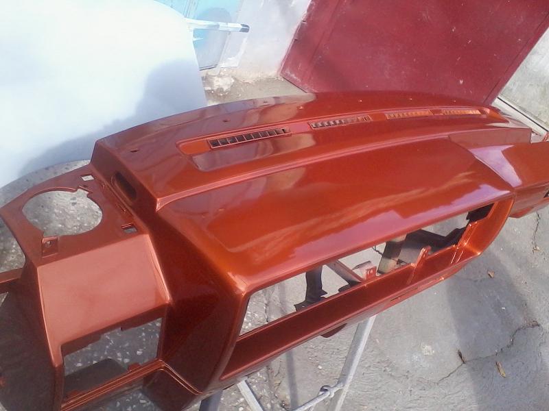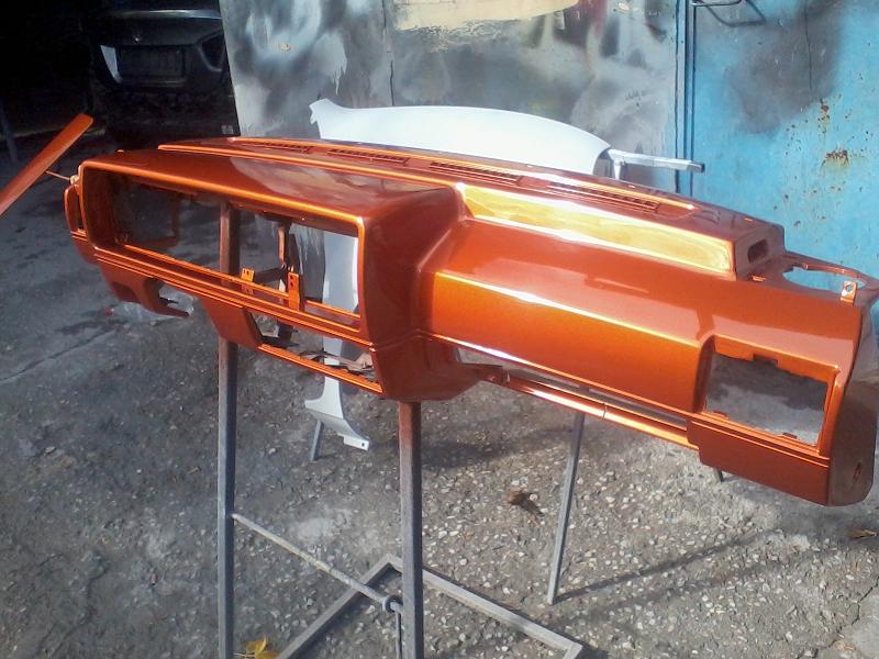В неделя ще боядисваме таблото... и ще трябва да го монтираме вече, за да мога да закарам колата на тапицер да направи и седалките естествено оранжеви..... , но само средата на рекарото ,плата е оранжево и сиво на мини квадратчета преплетени