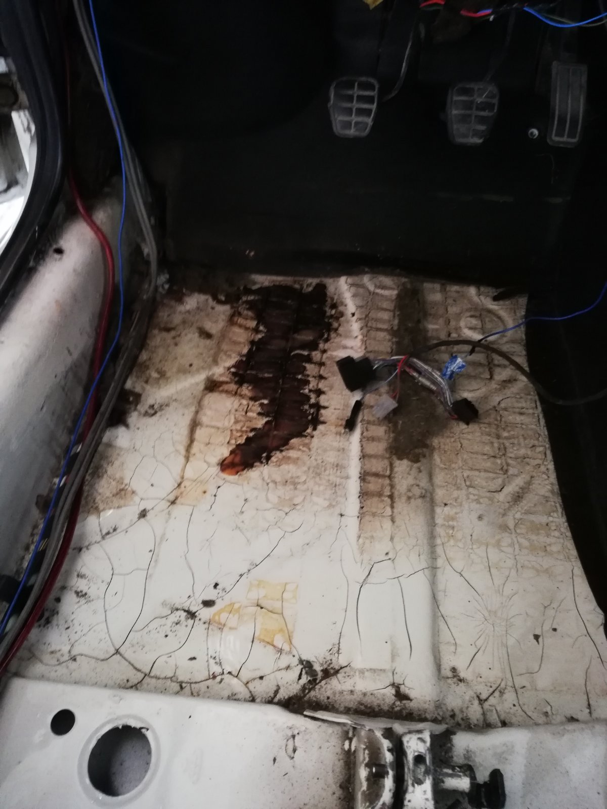Днес свалих мокета да видя пода,трябваше още преди като беше свалено таблото,за да е по удобно,но нищо.Добре изглежда,има на едно място лека ръжда,понеже там има тапа.Не знам защо,но цялото покритие е напукано.Разчоплих на едно място да видя под него как и изглежда добре.Според вас трябва ли да сваля покритието и на ново да се направи.За напред ще сложа и шумоизолация.