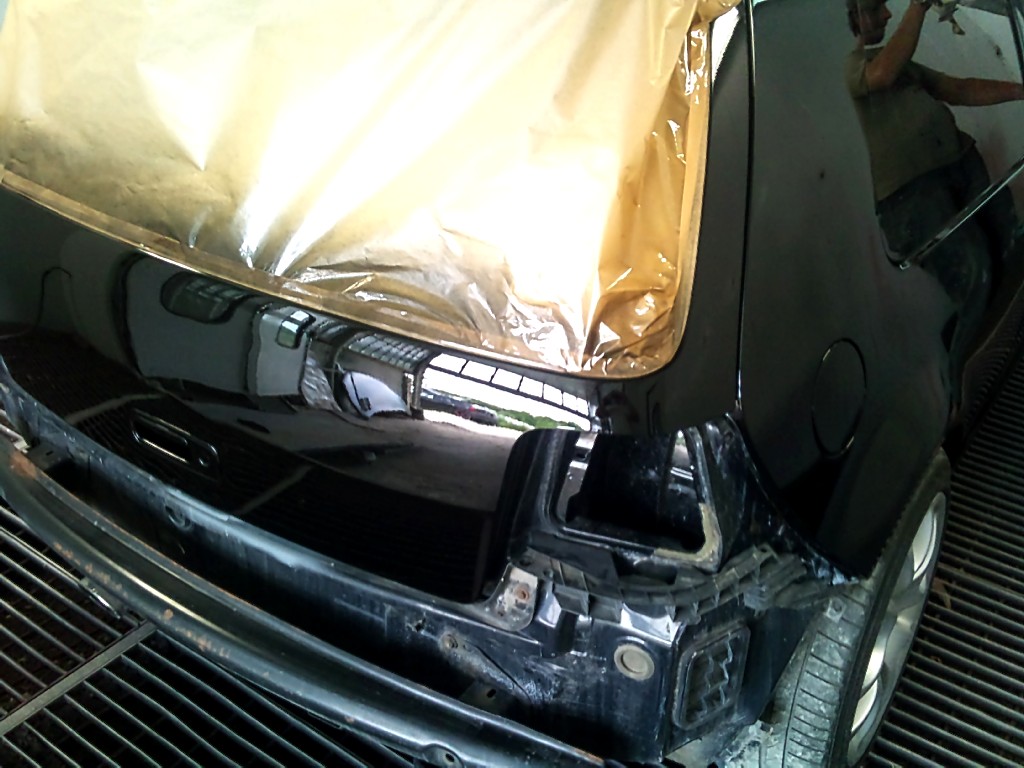 Вчерашното дъждовно време много обърка нещата. Намокри колата и не можеше да се работи по нея. Колата е на шприц и днес ще се мине на водна шкурка и в камерата за боя.