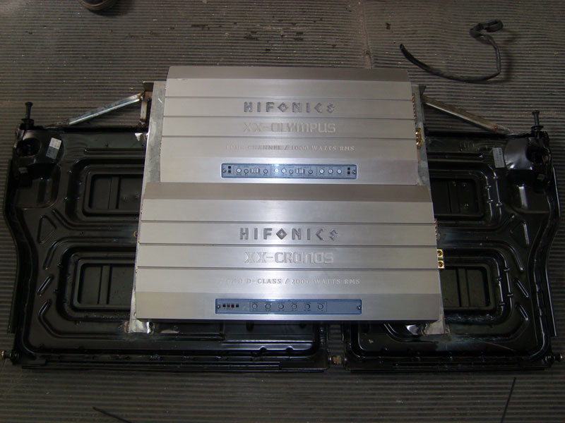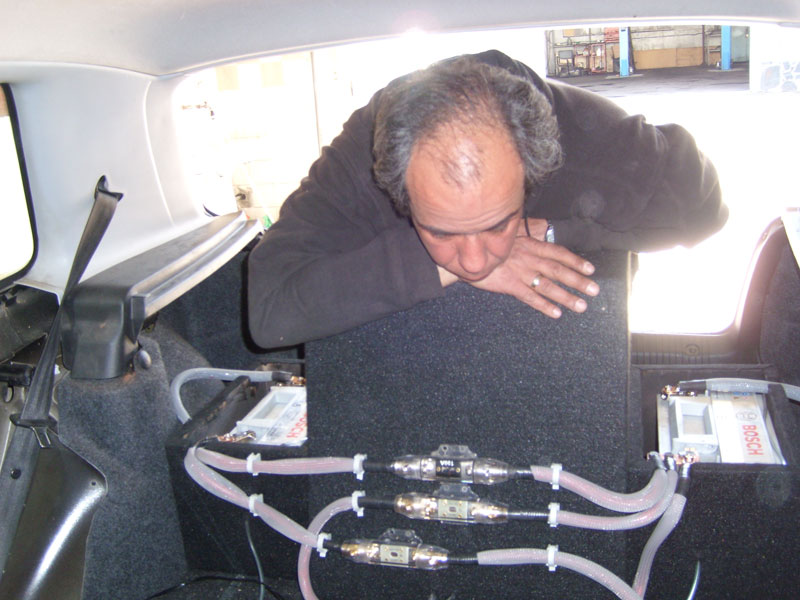 започна се с отливки отпред и отзад като отпред бяха поставени по един 8 инчов говорител а отзад 2x8 инча говорители, цялата кола се обезшуми с СТП фолио и се започна полагането на окабеляването поставянето на предпазители и допалнителни акумулатори