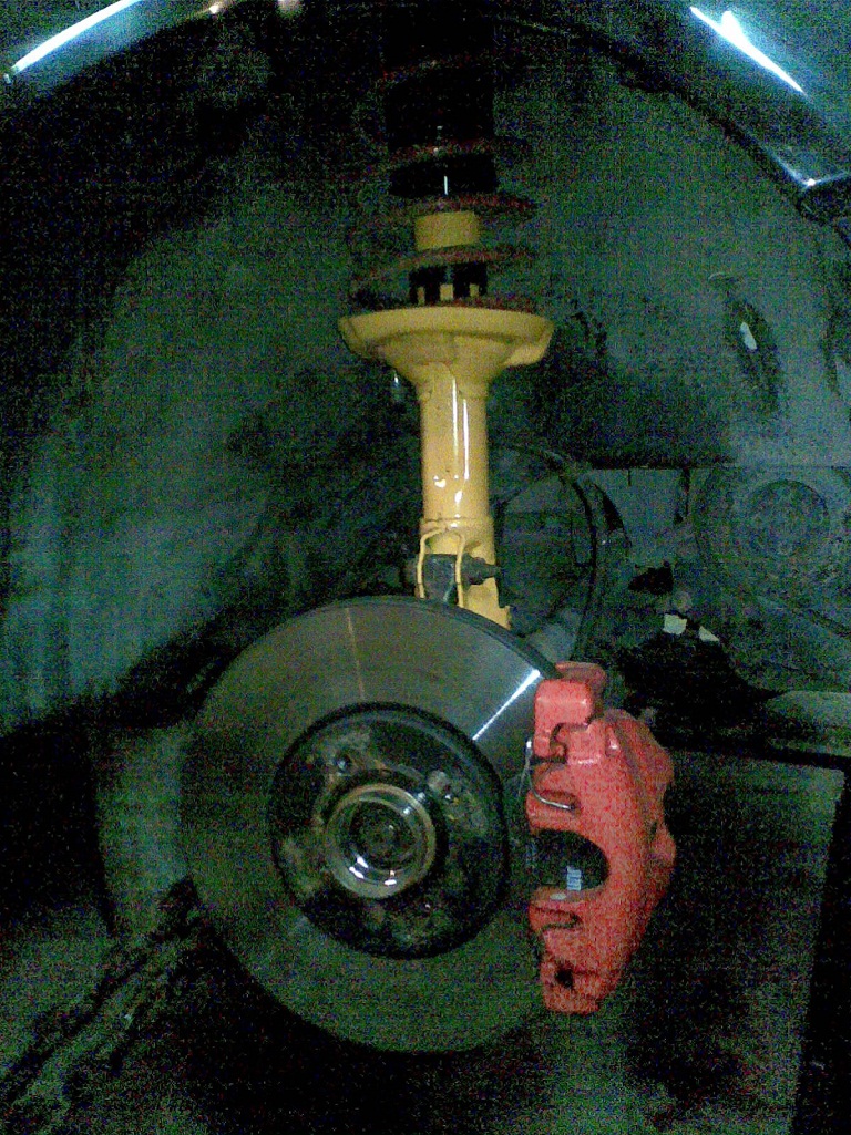 И така от към аудио я докарах така че да ми харесва,Изкарах с така започната и недоразвита кола около година и половина и един ден реших че е време да продължа започнатото.С първото което започнах беше спирачната система исках да сложа по големи дискове защото се пак джантите са 17-ки а оригинални те дискове са само 237мм, затова започнах търсене на по големи такива.След кратко търсене намерих желания диаметър и един ден се започна монатът им. Купих дискове 288мм с апарати Ате