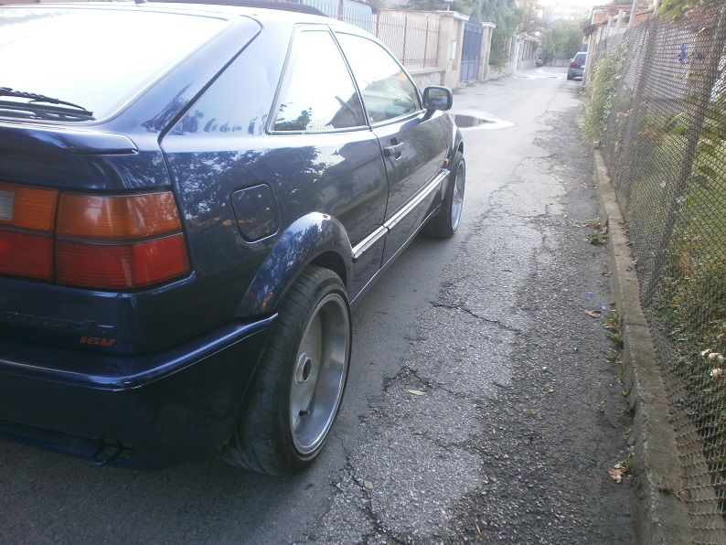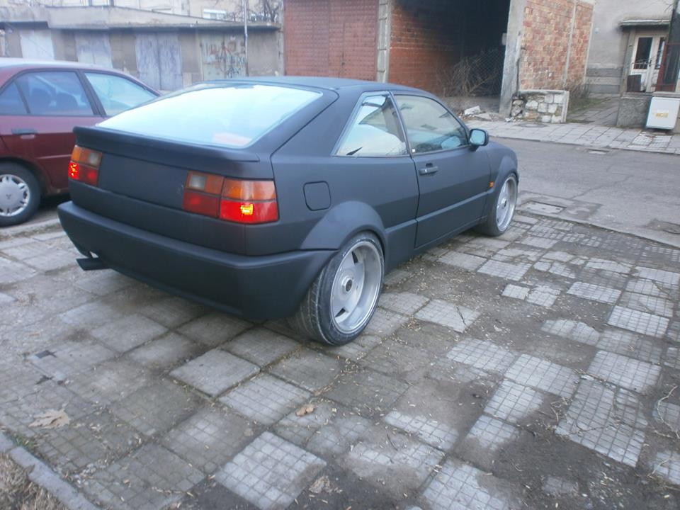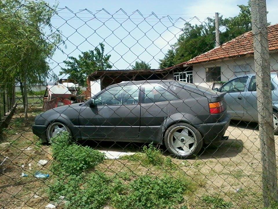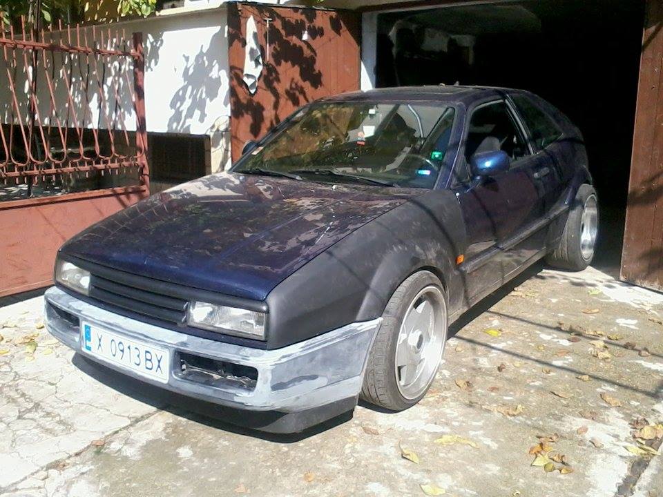Доста се чудих дали не е прекалено рано да пускам тема, но пък като всичко е готово няма да има продължение и никой няма да следи темата. Основата на проекта е Vw Corrado 94 9А. Взех го в доста запазено състояние без ръжда, без никакви проблеми по двигател и ходова част. Още преди да взема колата ми изпаднаха Борбет А 17 4х100 (преправени) 8,5j х 10j и ги съчетах подобаващо. Колата я взех в този вид.