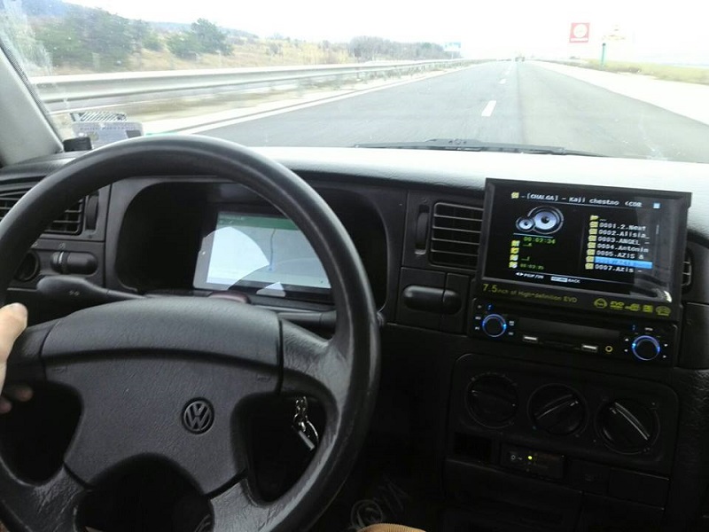 Само да ти кажа, че не е фолио. И дисплея е един, само на ДВД-то. Другото ми е телфона, когато карам по непознат път си пускам GPS-a.