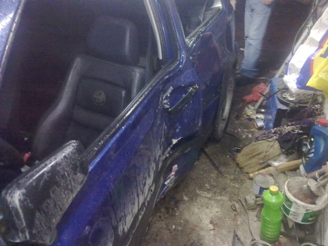 Ето така изглежда в моментта колата, като следващата седмица ще я спра да я позакърпим малко и за боядисване. Трябва да сменя и тампоните на носачите, понеже беше неизбежно да незаминат. А акъв цвят мисля да я боядисам.