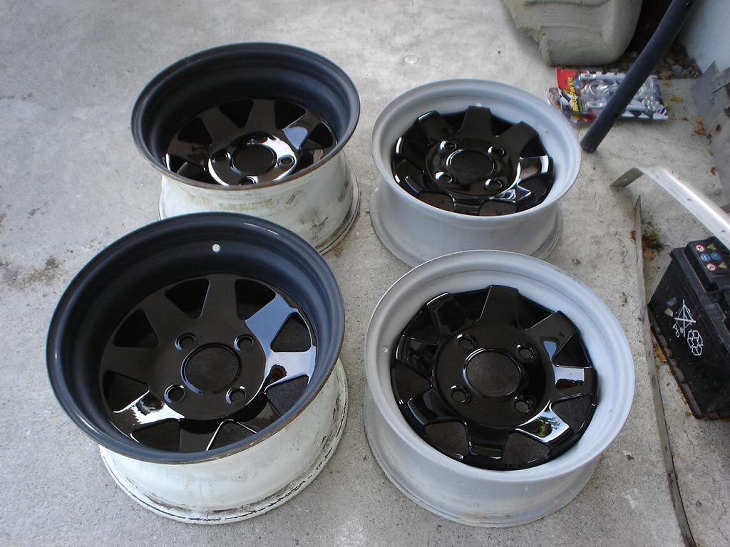 Джантите които ще бъдат ползвани са метални задни 15/8 а предни 14/7. Бяха в бял цвят а сега вече са подготвени за новата боя.