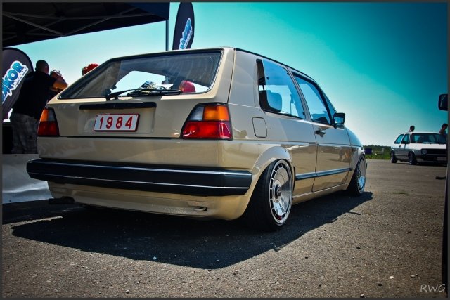 Готино Голфче.Винаги съм харесвал точно този класическия стил на Голф 2-ката.Цвета на колата ти ме кефи,а червената ивица по цялата решетка отпред ми харесва колко готино се вписва във визията на Голфа.Успех с развитието колега