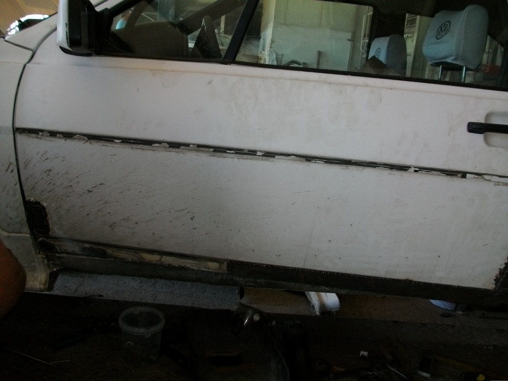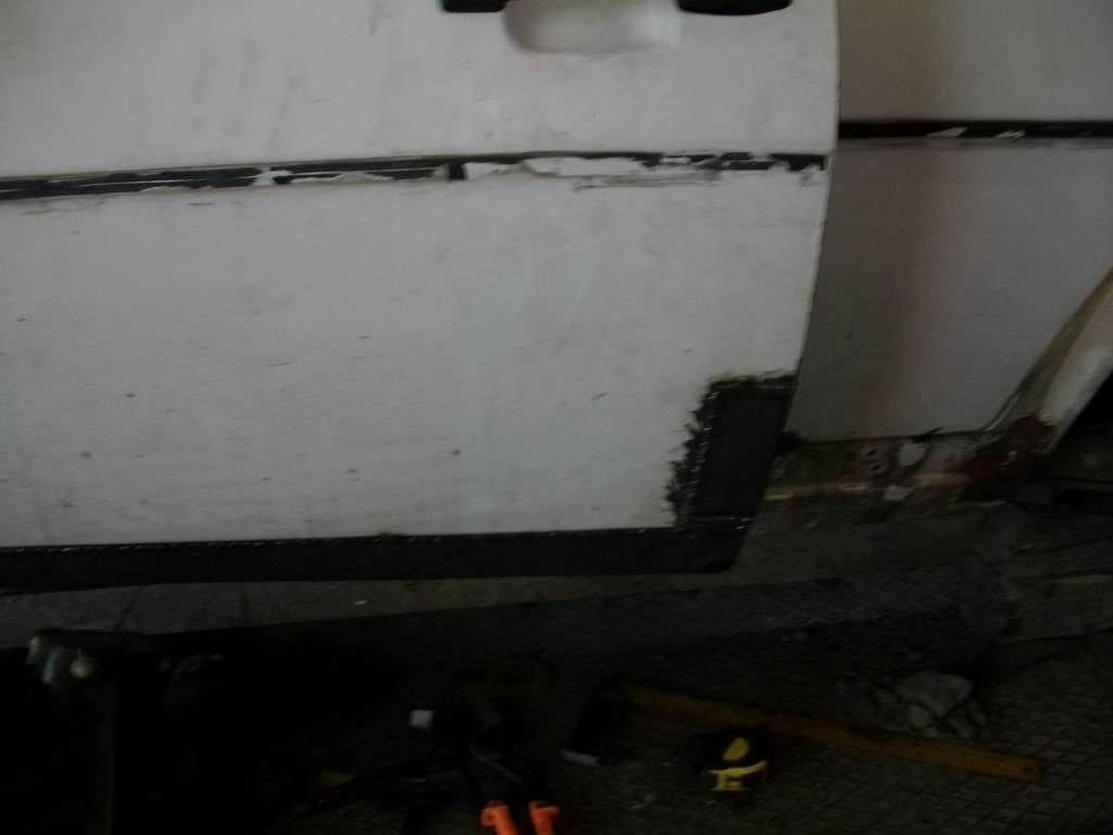Малко снимки от вчерашните и днешните кърпежи по колата. Лявата страна на автомобила е значително по корозирала от дясната. Учудващо е, че пода и праговете на колата са здрави. :!: :roll: