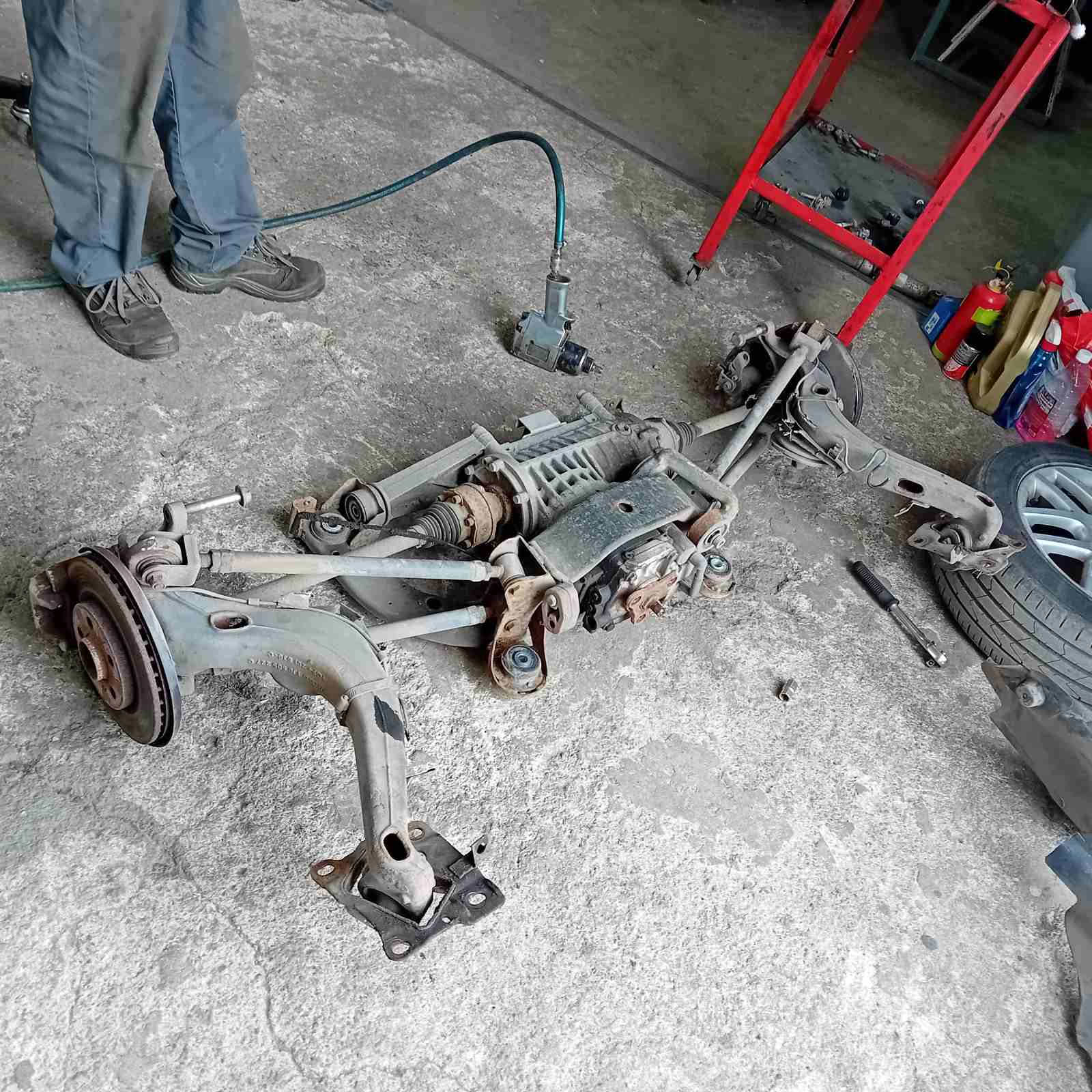 Отзад е с раздвижни щанги за камбер корекция. Отпред е с носачи и шенкели от ТТ.
