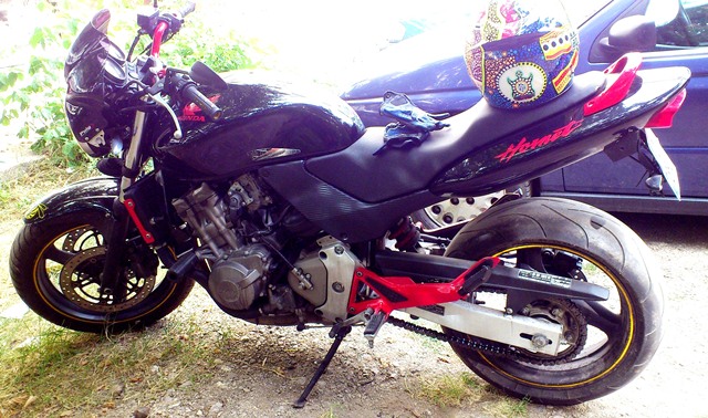 , после една година тунинговах един Shadow и таман го направих и един бензинджия ми се примоли и го купи направен и некаран, после се метнах на една Ямашка FZ6 - хубава и спретната моторетчица, ама нещо не ми допадна на вървеж и сега съм ей с тоя Hornet 600 ... всичко съм му сменил и ако до напролет не го продам, ще си го юркам с кеф ... превъзходна машина!