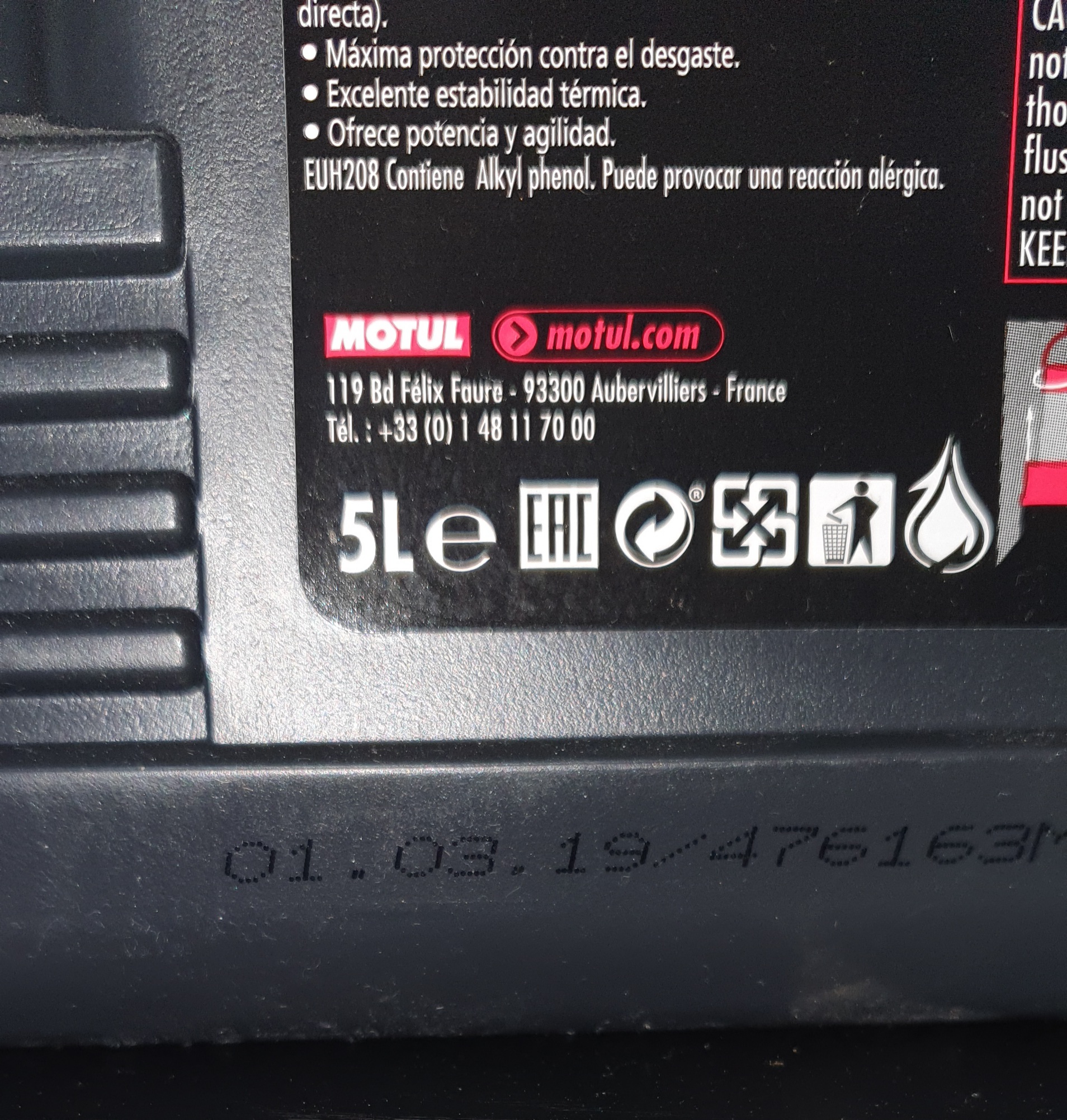 Да повдигна малко темата, понеже е доста стара. Намерих една 5 литрова туба с масло Мотул 8100 X-cess 5w-40 ( със същото карам и в момента) . Тубата е разпечатана и има останало в нея около литър и половина. Може ли да ми влезе в употреба или да го хвърлям? Нямам представа от колко време седи тази туба. На нея намерих дата март 2019, дали това е срока на годност?