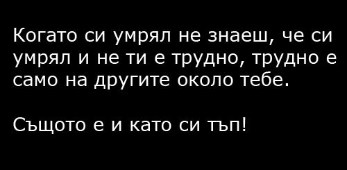 С този начин на мислене би трябвало да ти отнемат свидетелството завинаги. http://1.bp.blogspot.com/-DbjzDLCwLT0/UqYlB2Rr5xI/AAAAAAAAKPU/2JXXgvbcE0A/s1600/typ.jpgundisput написа:Има ли някакви други каузи с които някой от вас вече се сблъсквал наскоро, защото ме спряха бях пил 500 мл вино от магазина и кръвната проба ми показа много промили (1,56) не че съм бил толкова пиян че да не мога да карам, дори не ме беше хванало виното ама ето на взеха ми книжката и пробация, колата ми спряха от движение за 1 месец и за 5 ми взеха книжката. Имам човек който може да ми изкара от Англия книжка и дали ще мога през тези докато си взема моята да карам с английската.Не, че няма да си карам с английската за постоянно но все пак дали няма да има много проблеми.