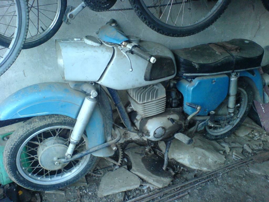 Миналото лято в София видях потресаваща гледка-едно МЗ 175 см3 от 1976 примерно,което е било от кортежа на тато и така изглеждаше.Спрях го директно на улицата за "разпит"