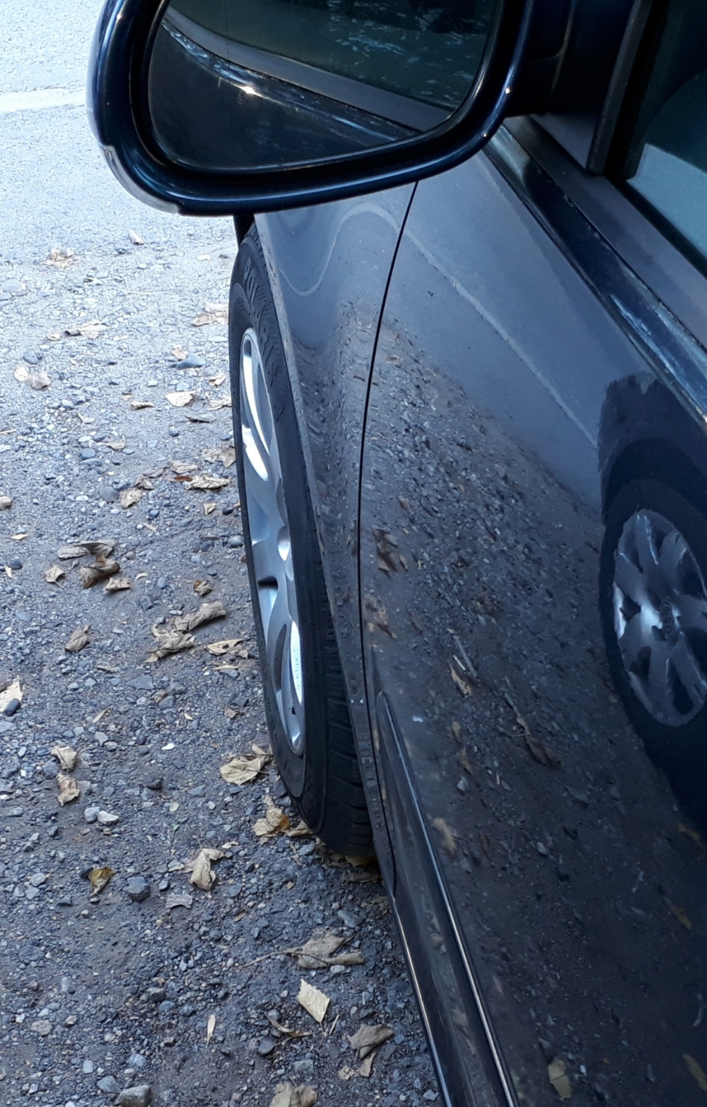 За красота - красиво е. Просто лятните гуми бяха на оригиналните за модела джанти с ЕТ50 и доста по-прибрани. Сега зимата ще карам с тия, ако намеря предни калобрани ще сложа и така.Щото и цвета на колата е такъв, че много личи мръсотията... като се наклепа.