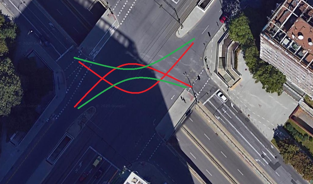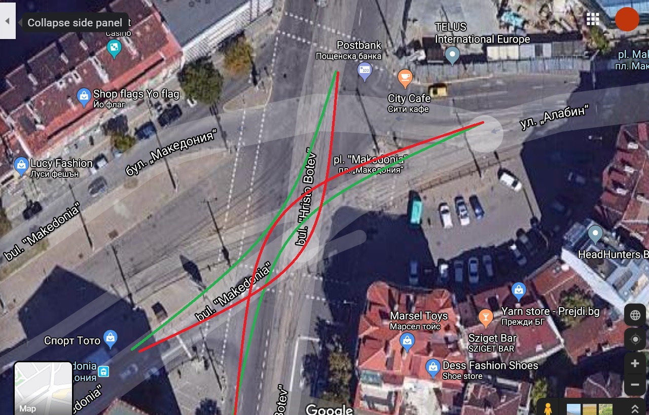 Курт Деликуртев написа:Двете кръстовища са доста различни, при първата ви снимка е доста рисковано да се кара по зелените стрелки.