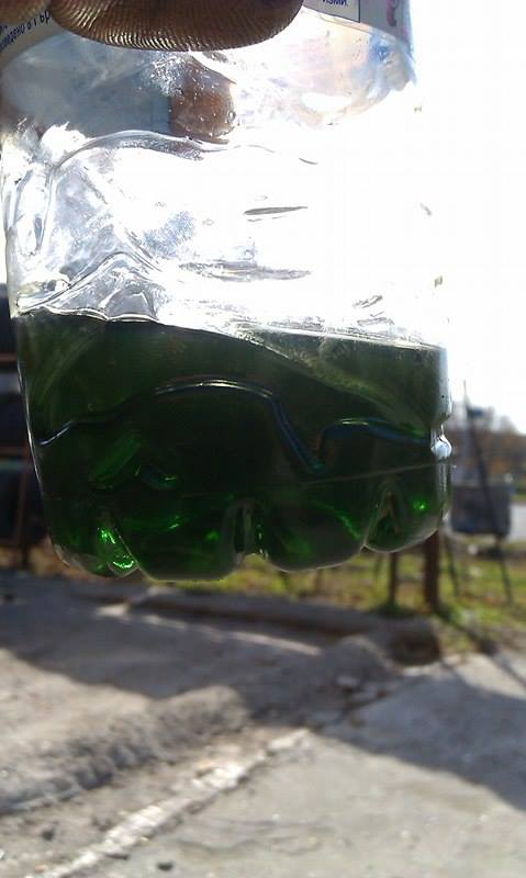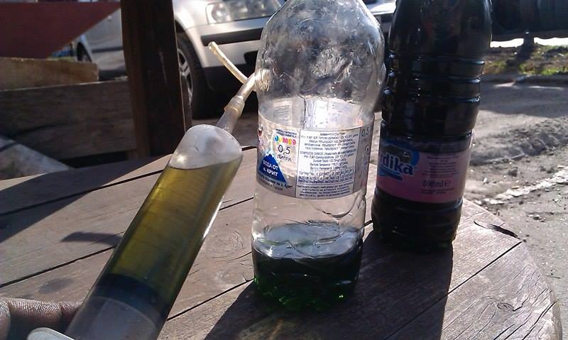 шишето от "сердика" е течността от казанчето и помпата на съединителя - не пропуска светлина дори срещу слънцето