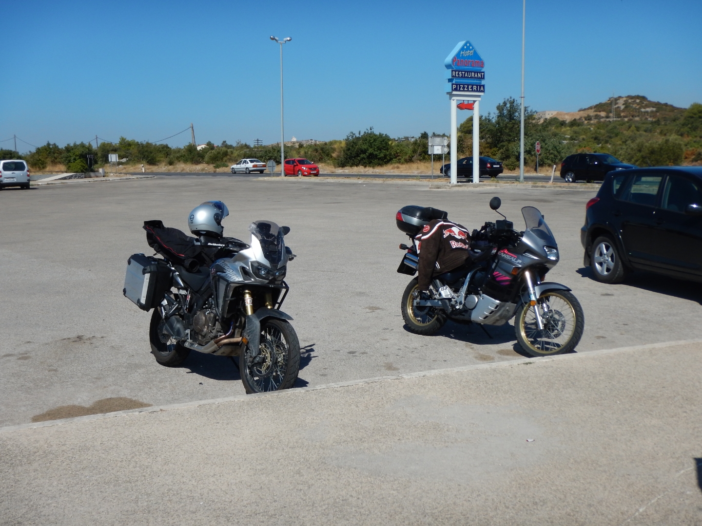 / и пихме по едно кафе. На връщане се присъедини още един фен с едно Сузуки Бъргман.Карахме до Велико Търново където се наложи да се отбием някъде за облекчаване