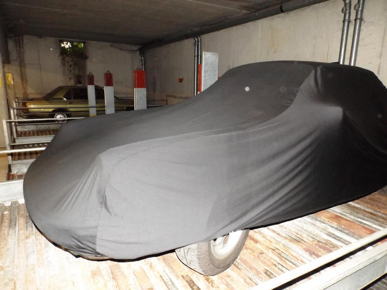 Тук една по-трудна задача ... колата е покрита с платнище ...