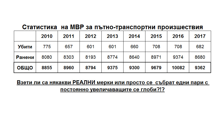 Вижте статистиката на МВР за ранените и убити по пътя и ще стане ясно, че те се увеличават всяка година от 2010 насам.