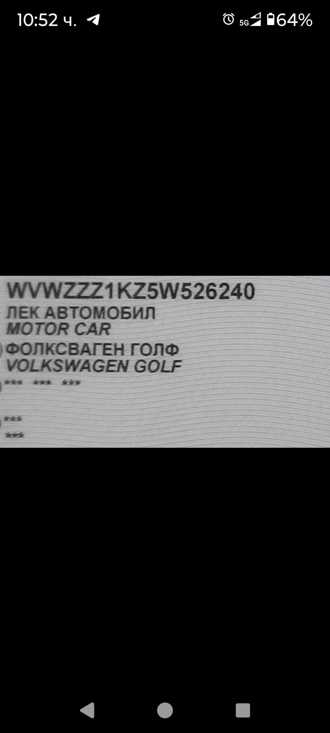 - Автомобил: VW