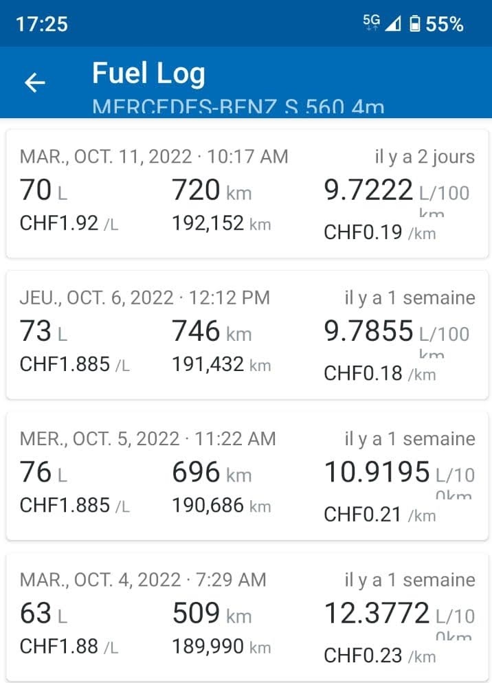Заредих 70 литра дизел, на цена 2,27 швейцарски франка за литър, почти 160 франка за пълен резервуар,