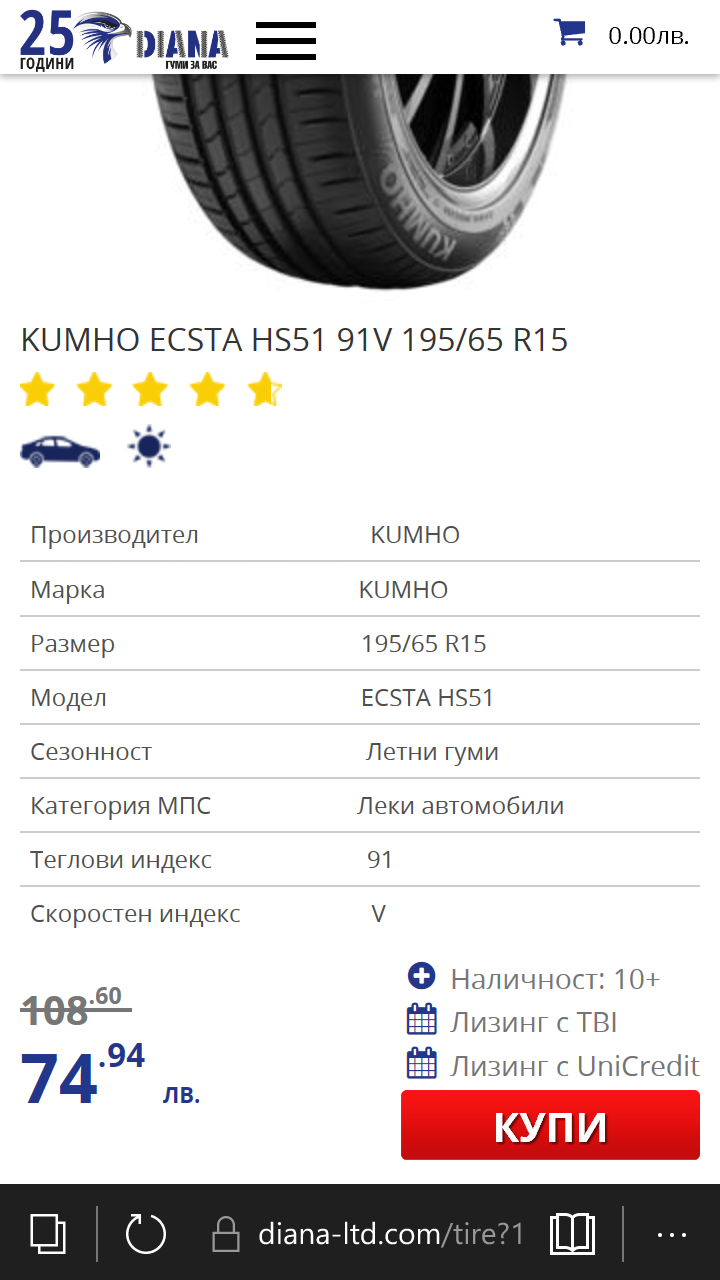 Континентал е 105 лв., Дънлоп 100 лв., Унироял 90 лв. Избор голям