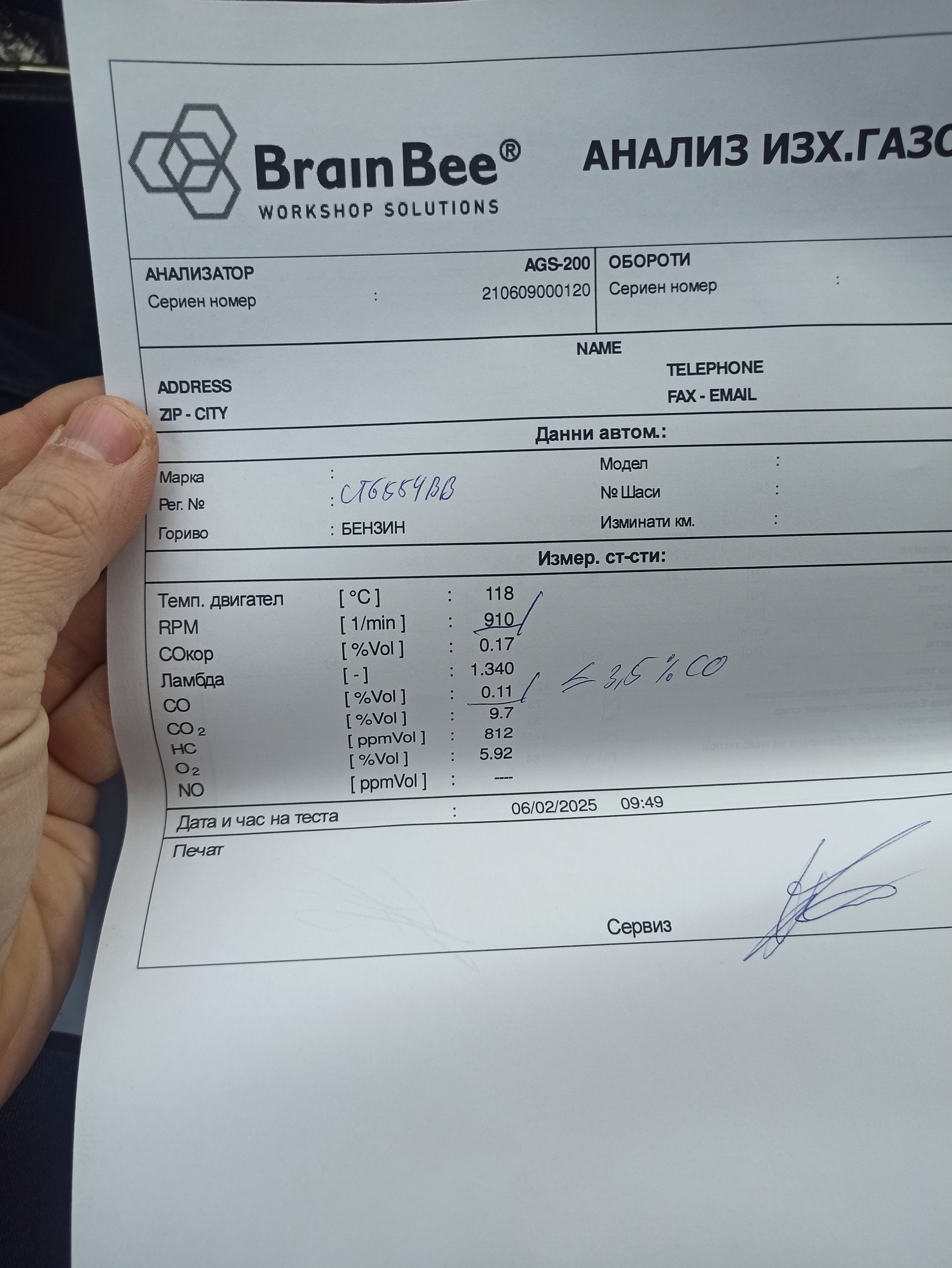 И при мен е подобна хава - доста бедна смес на газ... Но CO ми е около 0.1 (няма как при такава бедна смес).