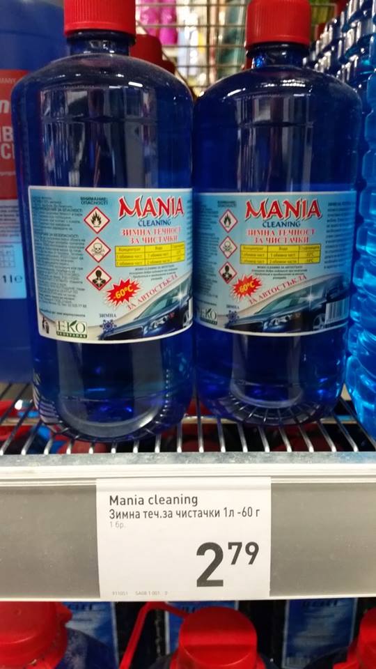 В събота в кауфланд малашевци, бяха пуснали спирт за горене 900 мл за 1.5 лв, взех само 2 ботилки и сега ме е яд, че вече са свършили. В течността за чистачки основното е метанола (технически спирт) другото са ароматизатори.