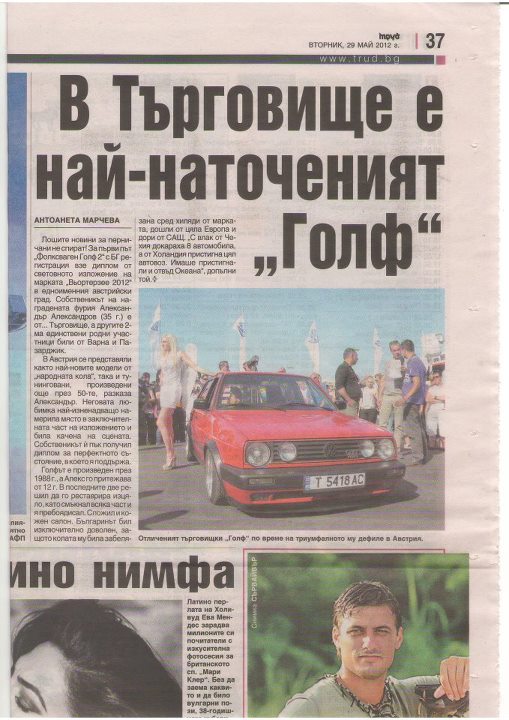 Жоро наистина има право.Хората които могат да оценят една кола са много малко в България.Спор няма всеки с вкусът си но нека всеки да пише в темите в които мисли че автомобилът му харесва и е достигнал неговата представа за кола. Мнения от сорта колата е много добра но е едно стоково ГТИ че джантите са много хубави но с черна среда не седели добре или колата е перфектна но имала мухи и комари на номера са излишни и не на място.Колкото до цветът на автомобила уникален е и най важното все още се използва при по новите модели на Голф.