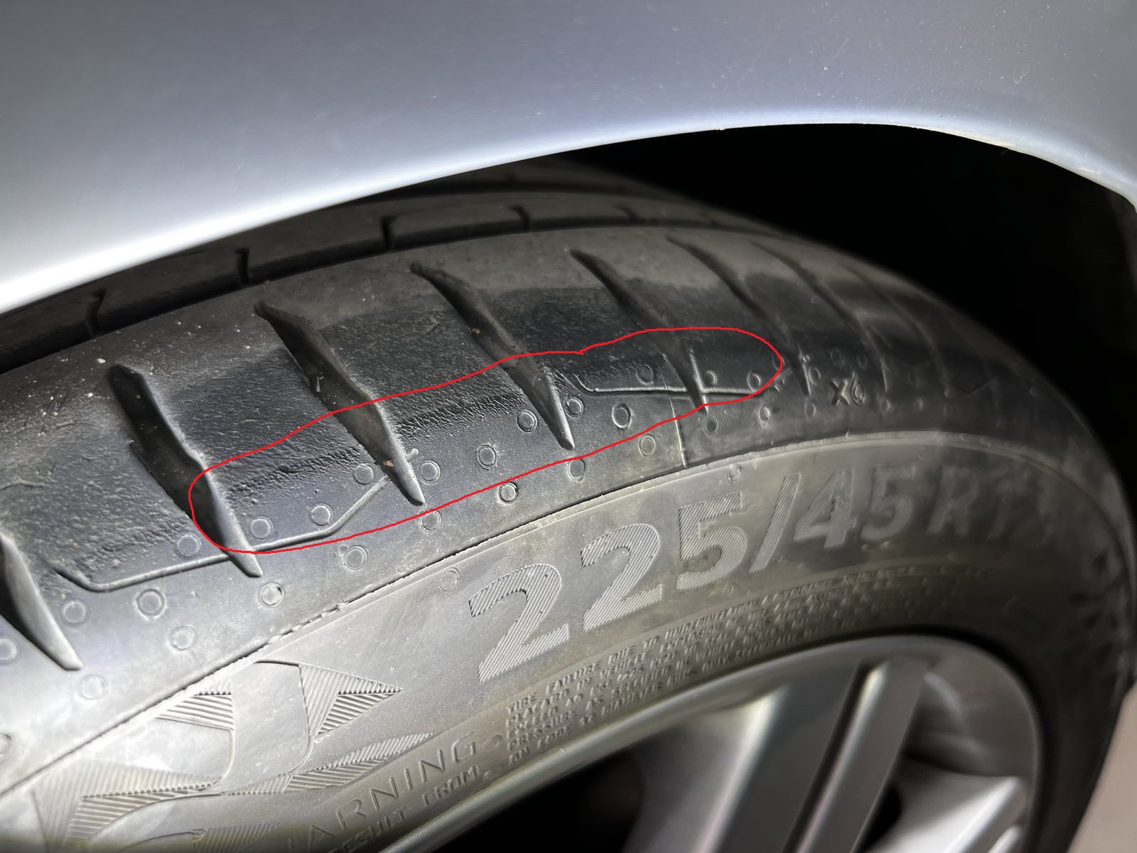 Само една гума ли е така или всички? Само от външната страна или и от вътрешната?