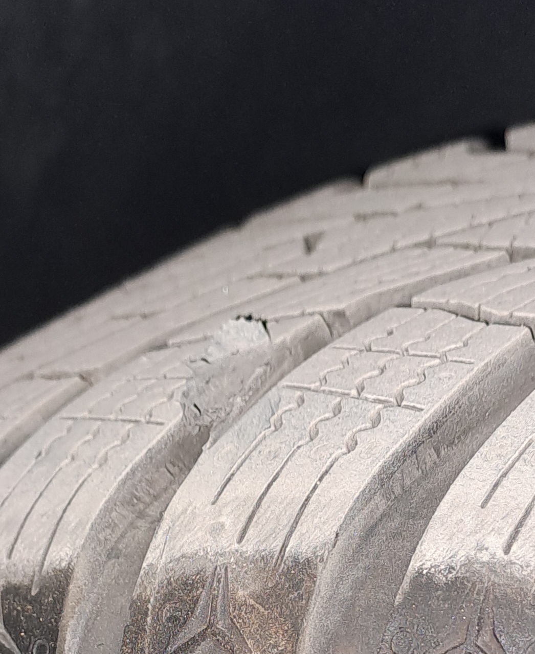 При демонтирана от джантата и натиск вертикално се виждат цепнатините.